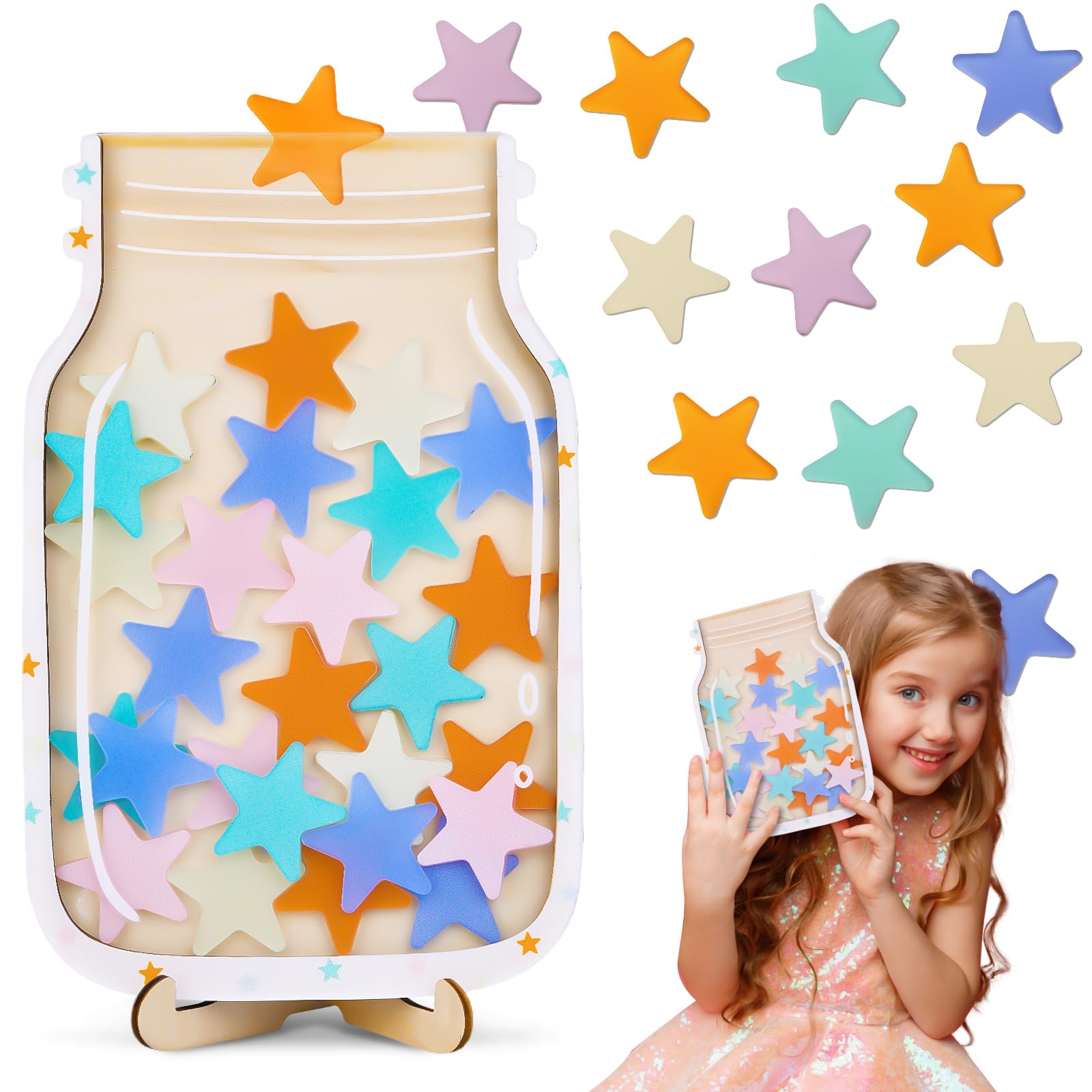 Belohnungsglas Für Kinder | 28 Sterne | Mit Holzhalter | Für Zuhause & Klassenzimmer