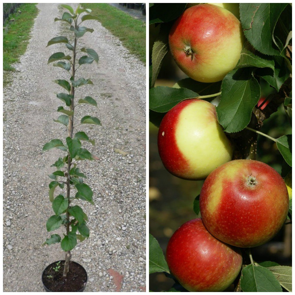 Stell dir vor: Du pflanzt einen Apfelbaum und kannst schon nach kurzer Zeit deine eigenen süßen Äpfel ernten! Der Säulenapfel Berbat macht's möglich. Diese tolle Sorte kommt aus Frankreich und ist richtig robust - sie ist schorfresistent und wächst auch super in Kübeln auf deinem Balkon oder deiner Terrasse. Die Äpfel werden groß bis sehr groß und schmecken überwiegend süß mit lockerem Fruchtfleisch. Von Mitte September bis Mitte November kannst du die leckeren Früchte ernten. Der Baum wird im 7,5 Liter Topf geliefert, ist schon etwa 80-120 cm groß und zwei Jahre alt. Er wächst später auf 2-3 Meter heran - perfekt auch für kleine Gärten oder als platzsparende Alternative zu Spalierobst. Wenn er Seitentriebe bildet, einfach im Juni und August auf Fingerlänge einkürzen. Wichtig: Die Baumspitze nicht schneiden, sonst wächst er mehr in die Breite. Wir liefern dir den Baum direkt aus unserer Baumschule mit Pflanzanleitung und geben dir sogar ein Anwachsversprechen! So hast du lange Freude an deinem eigenen Obst und kannst dich jedes Jahr auf frische Äpfel freuen. Einfach pflanzen, pflegen und genießen!