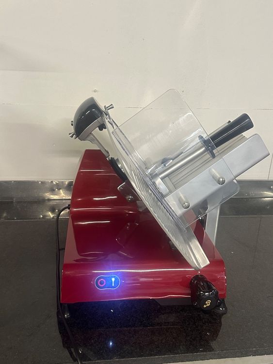 Wow, mit dieser Berkel Aufschnittmaschine fühlst du dich wie ein echter Profi-Koch in deiner eigenen Küche! Die XS 25 in edlem Silber ist ein absolutes Powerpaket: Mit 400 Watt Motorleistung und 25 cm Schneidebreite meistert sie mühelos jedes Aufschnitt-Vorhaben. Egal ob feine Wurstscheiben fürs Frühstück oder dünne Fleischscheiben fürs Abendessen - die Präzision ist einfach genial. Die verstellbare Schneidstärke von 0-14 mm gibt dir totale Kontrolle über die Dicke deiner Scheiben. Das Edelstahl-Schneidemesser ist nicht nur super scharf, sondern auch super einfach zu reinigen. Und das Beste: Bei uns bekommst du das komplette Set inklusive einem einzigartigen Fassholzbrett aus Eiche! Jedes Brett ist handgefertigt und durch die Maserung ein Unikat. Perfekt zum Servieren oder als Unterlage. Die Maschine hat einen vollständigen Messerverschluss für maximale Sicherheit beim Reinigen. Robust verarbeitet wird sie dir viele Jahre treue Dienste leisten. Ob für den privaten Gebrauch oder kleine Gastronomie - diese Aufschnittmaschine macht einfach Spaß! Einfach zu bedienen mit manueller Steuerung, aber mit Profi-Ergebnissen. Investiere in Qualität und hol dir den Berkel-Feeling nach Hause. Die Maschine sieht nicht nur gut aus, sondern arbeitet auch extrem präzise und leise. Mit dem beiliegenden Eichenbrett hast du sofort die perfekte Präsentationsmöglichkeit für deine Kreationen. Ein Küchengerät, das sich schnell bezahlt macht und deine Kochkünste auf das nächste Level bringt!