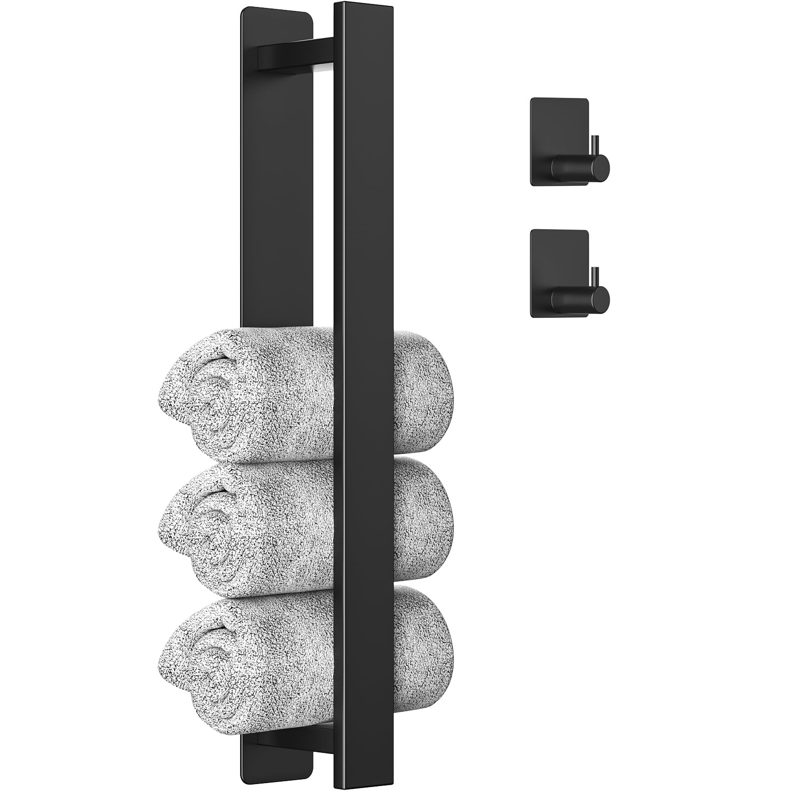 Hey, dieser Handtuchhalter ist perfekt wenn du keine Löcher in die Wand machen willst! Aus robustem Metall in mattschwarz, 41cm lang und mit 2 praktischen Haken für zusätzliche Handtücher oder Waschlappen. Die Montage ist mega einfach: 3M Klebepad abziehen, an die glatte Wand drücken, 30 Sekunden halten und 24 Stunden warten - fertig! Kein Bohrer, kein Dreck, kein Stress. Besonders clever: Die seitliche Öffnung! So kannst du Handtücher einfach seitlich reinschieben und wieder rausziehen - kein lästiges Darüberwerfen mehr. Ob fürs Gäste-WC, das eigene Badezimmer oder sogar in der Küche als Geschirrtuchhalter - überall einsetzbar. Und du kannst ihn sowohl horizontal als auch vertical montieren, je nach Platz und Geschmack. Die Oberfläche ist glatt und kratzt nicht, auch nicht an den empfindlichen Handtüchern. Rostfrei und für feuchte Umgebungen geeignet - also perfekt für Badezimmer. Wenn du also schnell und unkompliziert Ordnung in deine Handtücher bringen willst, ohne die Wand zu beschädigen, dann ist dieser Handtuchhalter genau das Richtige. Einfach kleben, Handtücher rein - und schon sieht alles ordentlich aus!