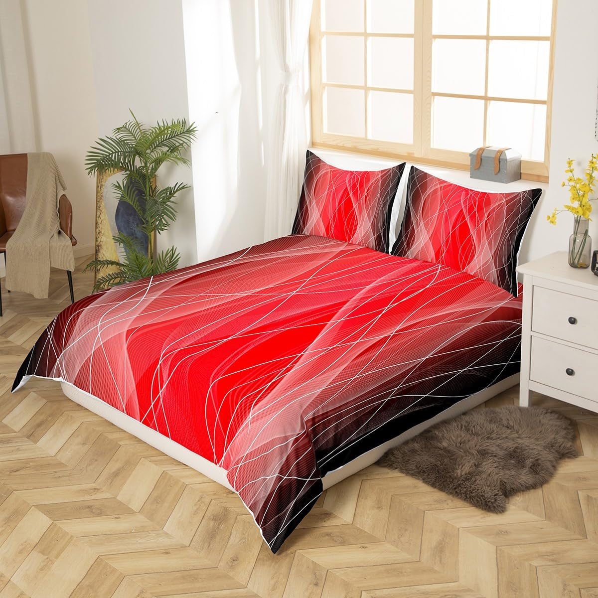 • Rote Ombre Bettwäsche 135x200cm - Abstraktes Design Für Teens