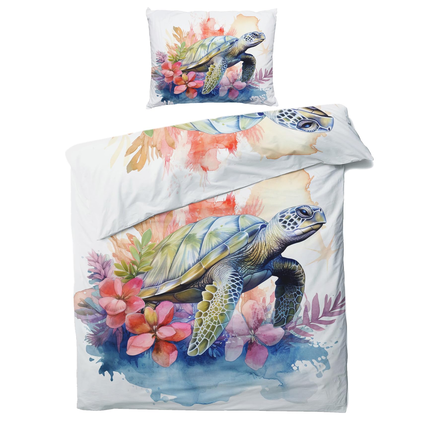 Bettwäsche 180x200cm Meeresschildkröte - Mikrofaser Wende-Bettwäsche-Set