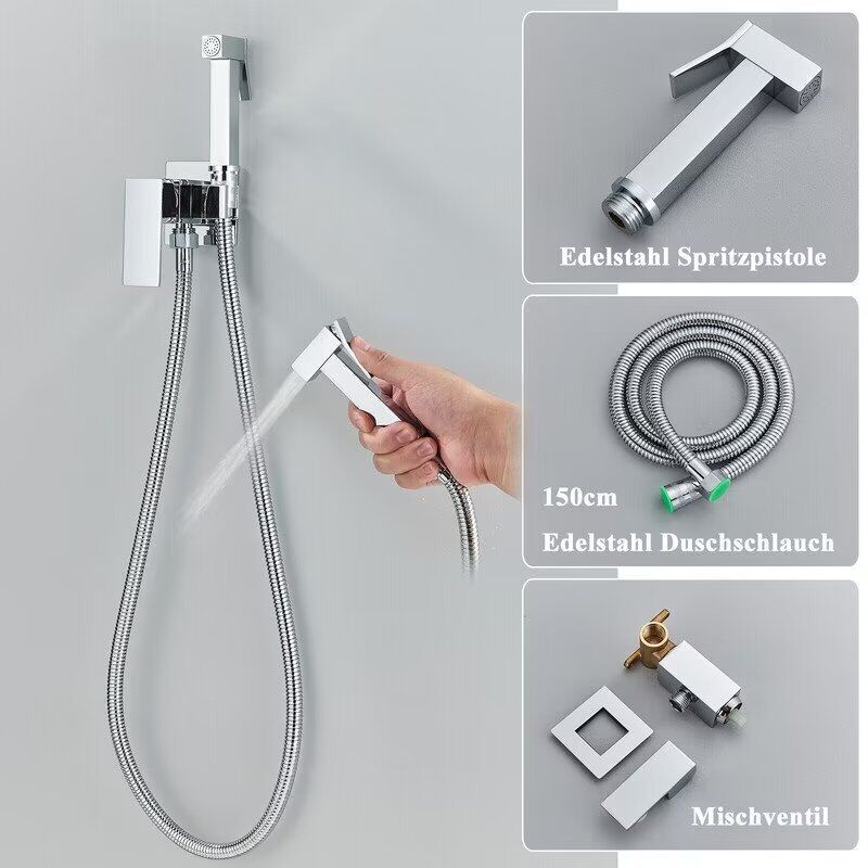 Hey, dieser Bidet-Sprüher ist eine geniale Alternative zu Toilettenpapier! Aus 304er Edelstahl - rostfrei und langlebig. Mit 1,5m Edelstahlschlauch - flexibel und praktisch. Keramikventil für smoothen Betrieb ohne Tropfen. Starker Druck für optimale Reinigung, aber sanft zur Haut. Universeller 4-Punkt-Anschluss - passt an die meisten Wasserhähne. Perfekt für persönliche Hygiene, Haustierbad oder Babywäsche. Besonders gut für Schwangere und bei Hämorrhoiden. Einfach installiert - kein großer Aufwand. Macht das Badezimmer hygienischer und komfortabler. Hol ihn dir und erlebe frische Sauberkeit!