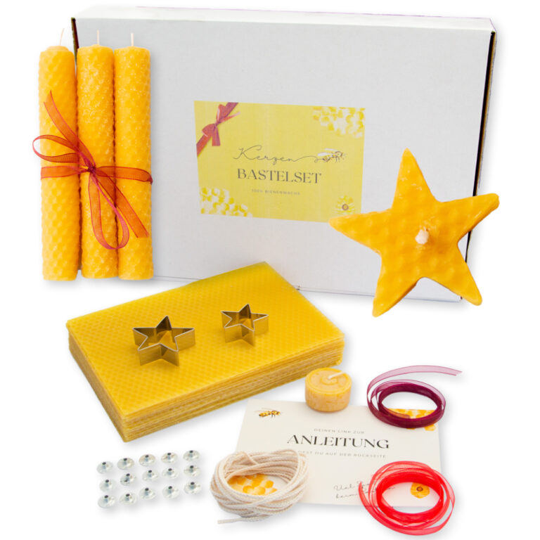 Kreative Kerzen selbst gemacht! Dieses Set mit 12 farbigen Bienenwachsplatten (20x20cm) und 12 Baumwolldochten lädt zum Basteln ein. Die natürliche Wabenstruktur macht das Rollen und Formen super einfach - ohne Werkzeug! Perfekt für Kinder ab 3 Jahren und Erwachsene. Ob Tiere, Blumen oder bunte Rollkerzen - der Kreativität sind keine Grenzen gesetzt. Ideal für Familienaktivitäten, Kindergeburtstage oder entspannende Bastelabende. Die fertigen Kerzen duften herrlich nach Honig und machen sich toll als Geschenk oder Deko. Einfach Docht auflegen, aufrollen und gestalten! Mach dein Zuhause gemütlich mit selbstgemachten Kerzen. Ein Naturprodukt das Freude bringt!