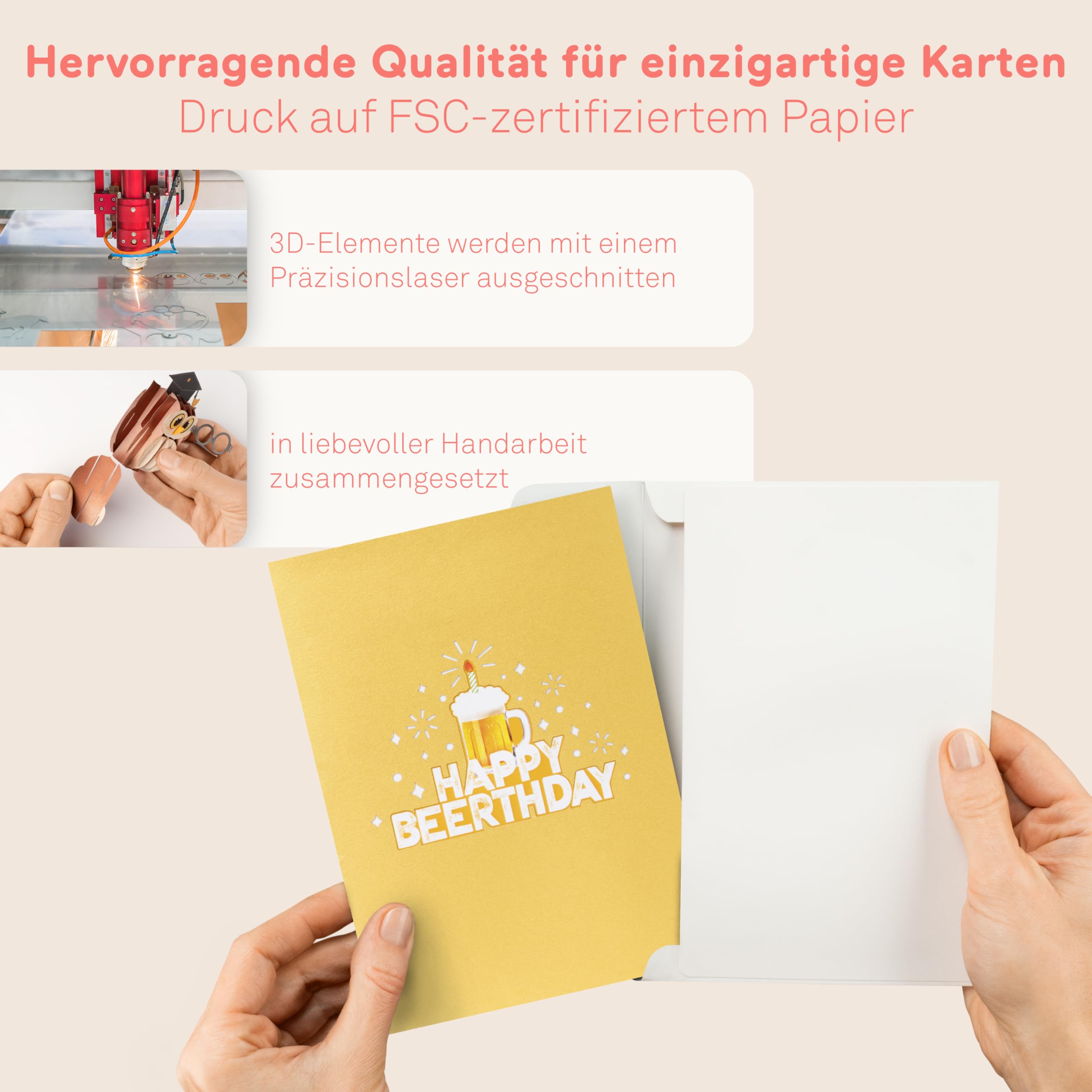 Wow-Effekt garantiert! Diese Pop-Up Karte von papercrush ist das perfekte Geschenk für Bier-Liebhaber. Sobald du sie öffnest, entfalten sich Bierkrug und Flasche in 3D - einfach genial! Perfekt für Geburtstage, Vatertag, Oktoberfest oder einfach so. Aus hochwertigem Papier - fühlt sich wertig an und hält lange. Handgefertigt - jedes Stück ein Unikat! Mit integrierter Notizkarte - schreib deine persönlichen Wünsche drauf. Auch super als Verpackung für Geldgeschenke - einfach reinstecken. Ideal für Papa, Freund, Opa oder Kumpel - jeder Biertrinker wird sich freuen! Kombinierbar mit einem Wiesn-Gutschein oder Craft Beer Geschenk. Die Details sind liebevoll ausgeschnitten - wirklich beeindruckend! Macht mehr her als eine normale Karte - bleibende Erinnerung garantiert. Einfach verschicken - kommt sicher an im stabilen Umschlag. Auch für Männer, die schon alles haben - damit triffst du ins Schwarze! Die Qualität überzeugt - kein billiger Kram! Überrasche deine Liebsten mit diesem besonderen Geschenk. Sie werden begeistert sein - versprochen! Hol dir den Party-Hit für jeden Anlass!