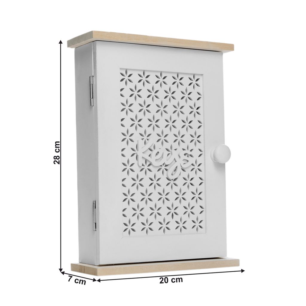 Schluss mit dem Chaos auf dem Flur! Dieser stylische Schlüsselschrank aus MDF-Holz bringt Ordnung in dein Zuhause. Mit den Maßen 6,5x27x20cm findet er an fast jeder Wand Platz und sieht dabei noch richtig gut aus.