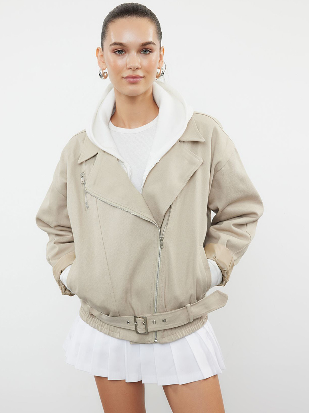 • TRENDYOL Damen Bikerjacke - Figurbetont Webstoff Coat