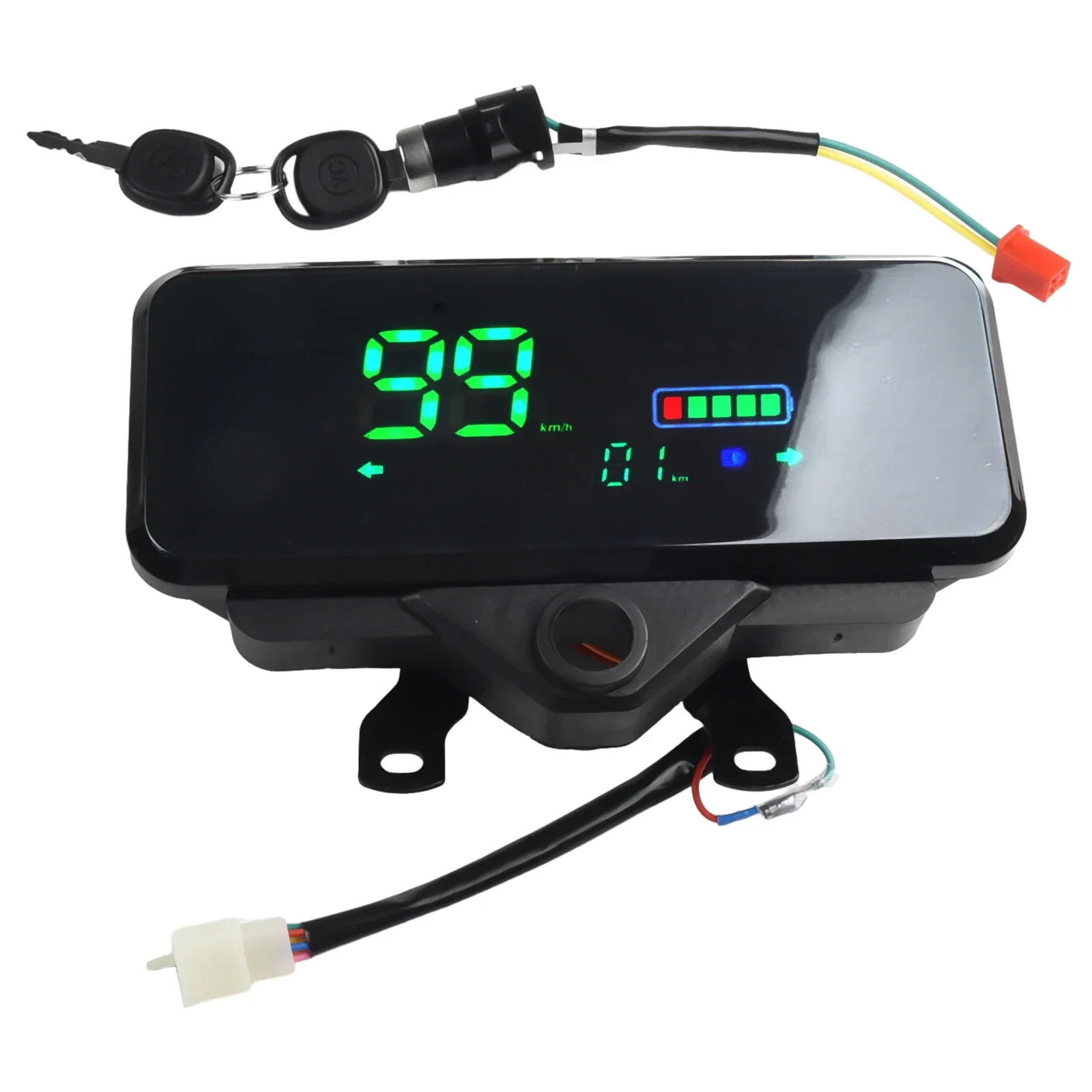 E-Bike- und Roller-Besitzer, dieses digitale Tacho-Display ist die perfekte Aufrüstung für eure Fahrzeuge! Kompatibel mit 48V, 60V und 72V Systemen, zeigt es euch alle wichtigen Daten auf einen Blick. Die 6-polige Schnittstelle mit farbcodierten Kabeln macht die Installation zum Kinderspiel: Blau für Linksabbieger, Grün für Rechtsabbieger, Rot für Pluspol, Schwarz für Minuspol, Gelb für Geschwindigkeit und Weiß für Scheinwerfer. Mit 26 cm Kabellänge habt ihr genug Spielraum für die Montage. Das LCD-Display ist bei jedem Wetter gut ablesbar und die optionale Windschutzscheibenabdeckung schützt zusätzlich vor Staub und Nässe. Temperaturbeständig von -20 bis 150°C - also für jede Jahreszeit geeignet. Einfach das alte Display abklemmen, das neue anschließen und schon seid ihr startklar! Perfekt für Elektrofahrräder, E-Bikes, Roller und sogar Elektro-Dreiräder. Hol dir dieses zuverlässige Display und behalte immer die Kontrolle über dein E-Fahrzeug!