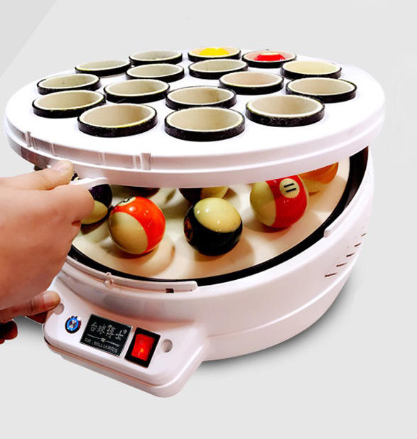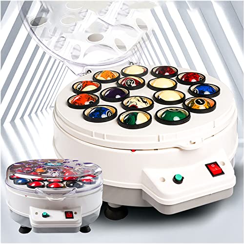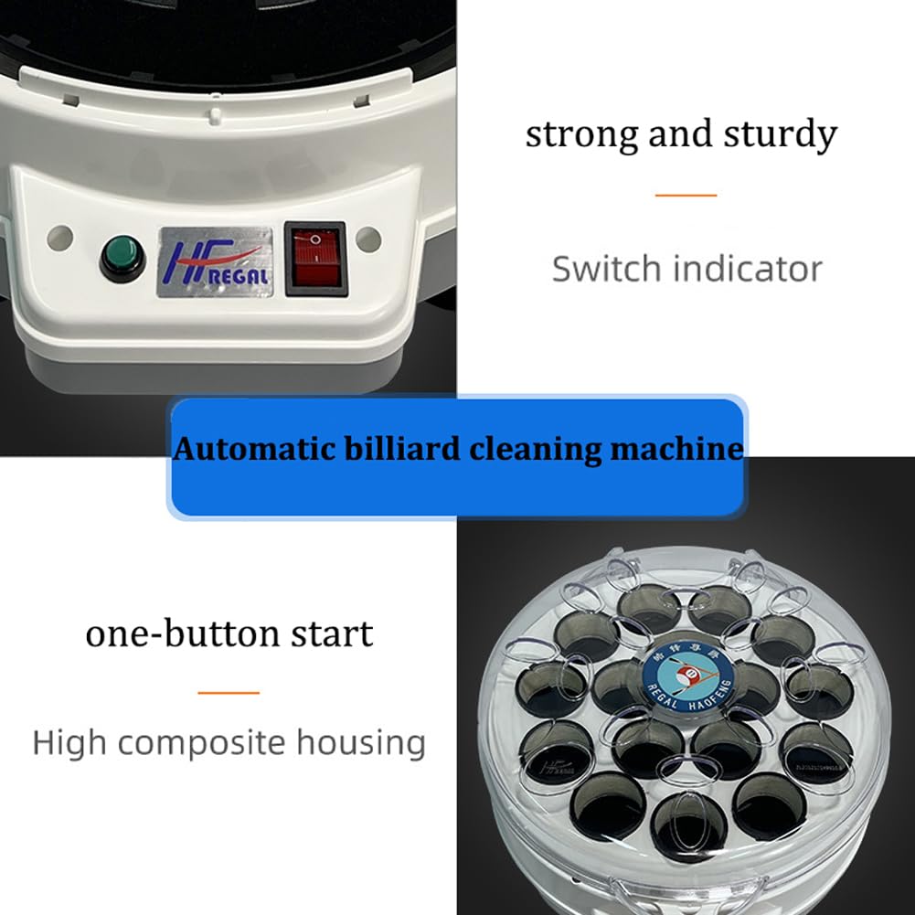 Billard-Fans, endlich Schluss mit klebrigen Kugeln! Dieser automatische Reiniger macht deine 16 Billardkugeln blitzblank in nur wenigen Minuten. Mit 180W Kupfermotor und 1000 U/min poliert er die Kugeln gründlich und entfernt jeden Schmutz. Einfach die Kugeln einlegen, 3-4 Sprühstöße Waschmittel dazu, Startknopf drücken und die Maschine erledigt den Rest! Sie rotiert 1 Minute, macht 15 Sekunden Pause und rotiert wieder 1 Minute - dann piept sie zur Fertigmeldung. Der herausnehmbare Tablett macht die Reinigung der Maschine super einfach. Mit rutschfesten Füßen steht sie stabil und die ovalen Wärmeableitungslöcher sorgen für Kühlung. Aus hochwertigem ABS, PC und Wolle gefertigt, hält dieses Gerät ewig. Perfekt für Billardclubs, Trainingsplätze oder deinen privaten Spielraum - für amerikanische und britische Kugeln geeignet!
