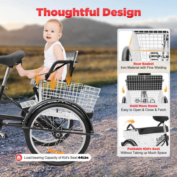 Suchst du ein praktisches Fortbewegungsmittel für die Stadt? Dieses biniliubi Dreirad für Erwachsene ist genau das Richtige! Mit 20 Zoll Rädern und 8-Gang-Schaltung meisterst du jeden Weg mühelos. Der große weiße Korb hinten trägt bis zu 20kg - perfekt für Einkäufe oder Arbeitsutensilien. Mit verstellbarem Sitz (74-90cm) und Lenker (102-108cm) passt es für Personen von 1,55-1,70m. Die V-Bremse und Feststellbremse sorgen für Sicherheit, reflektierende Streifen machen dich auch nachts sichtbar. Mit 110kg Traglast ist es stabil und robust. Perfekt für Stadtfahrten, Einkäufe oder einfach zum Spaß haben. Einfach ein praktisches Fahrrad, das Style und Funktionalität vereint!