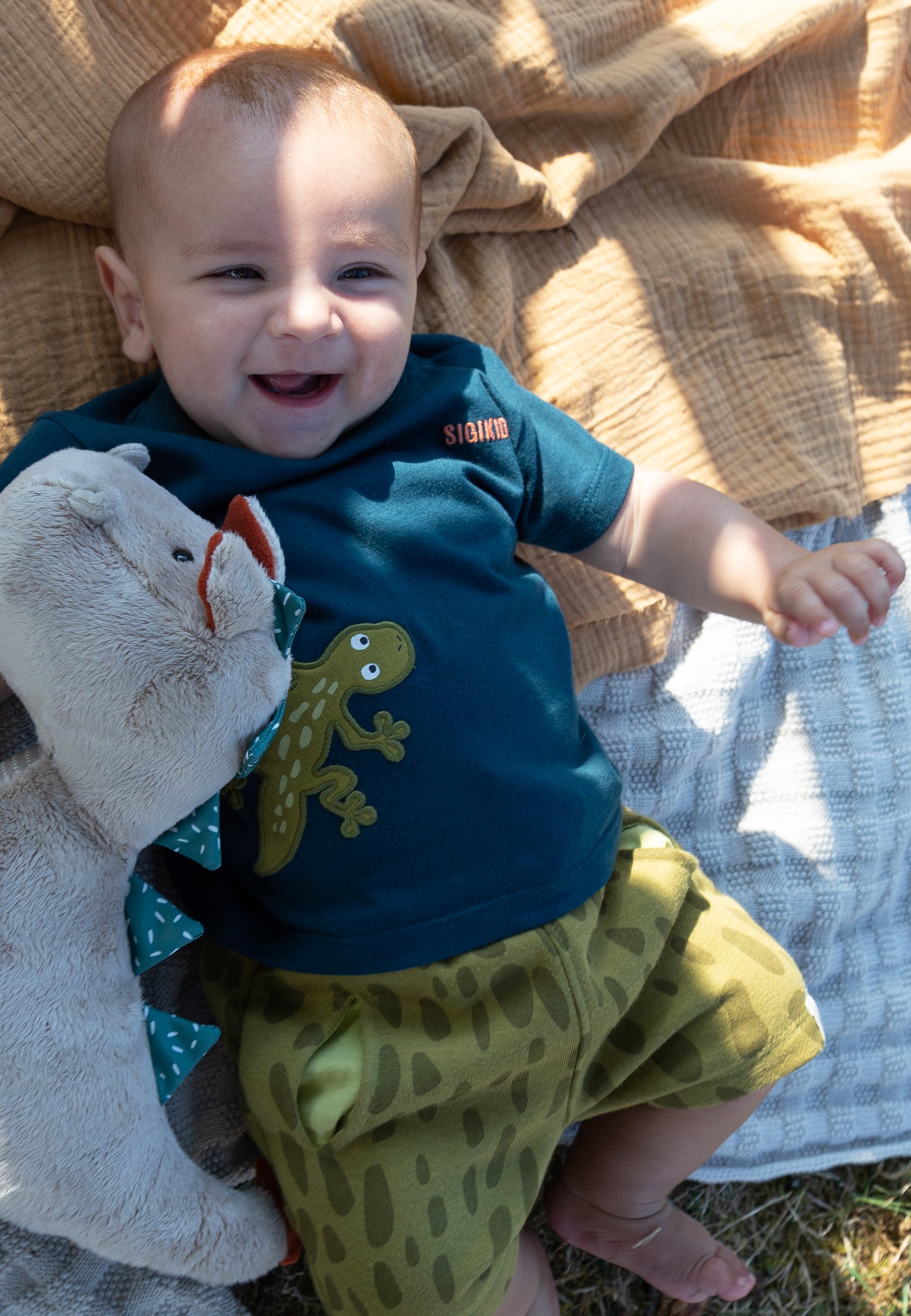 Supersüßes Langarmshirt für kleine Entdecker! Dieses hochwertige Shirt von Sigikid begeistert mit einem niedlichen Fuchs in einer Rakete auf Weltraummission. Aus 100% Bio-Baumwolle gefertigt, ist es besonders hautsympathisch und angenehm weich auf der zarten Babyhaut. Die praktischen Druckknöpfe auf der Schulter machen das An- und Ausziehen stressfrei. Das anthrazitfarbene Interlock-Material ist nicht nur stylisch, sondern auch pflegeleicht und waschbeständig. Das Highlight: Ein süßes Hangtoy in Raketenform zum Greifen, Spielen und Sammeln ist am Shirt befestigt. Erhältlich in den Größen 62 bis 98 - perfekt für Neugeborene und Kleinkinder. Die gestickten Planeten und Sterne sowie der Sigikid-Schriftzug runden das Design ab. So ist dein kleiner Schatz nicht nur gut angezogen, sondern hat auch noch Spielspaß garantiert! Öko-Tex zertifiziert für beste Qualität und Sicherheit.