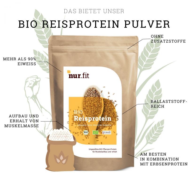 Perfektes pflanzliches Protein für deine Fitness-Ziele! Das FRISAFRAN Bio Reisprotein wird aus braunem Reis gewonnen und ist mit 80% Proteingehalt ideal für Sportler, Veganer und alle, die auf ihre Ernährung achten. Vollständig pflanzlich, glutenfrei und laktosefrei - selbst für empfindliche Mägen bestens verträglich. Reich an essentiellen Aminosäuren unterstützt es den Muskelaufbau und die Regeneration nach dem Training. Einfach in Smoothies, Shakes, Müsli oder Gebäck einrühren - der neutrale Geschmack stört nicht. Ohne Zusatzstoffe, Konservierungsmittel oder Zucker, dafür in zertifizierter Bio-Qualität. Für mehr Sättigung, bessere Verdauung und nachhaltige Fitness-Erfolge. Entdecke die pure Kraft der Natur!