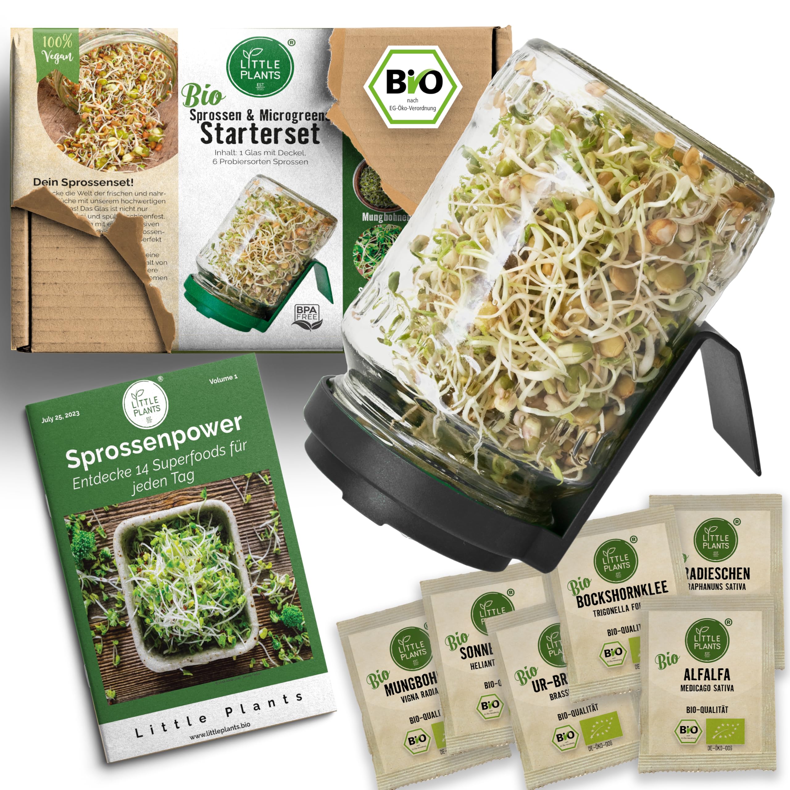 Frische Sprossen selbst ziehen - so einfach war's noch nie! Dieses niedliche Anzuchtset von Little Plants enthält alles, was du brauchst: eine hochwertige Porzellanschale mit Sieb und gleich drei Sorten Bio-Samen zum Ausprobieren. Perfekt für Einsteiger, denn du bekommst ein kostenloses E-Book mit allen Tipps und Tricks. Einfach QR-Code scannen und loslegen! Die Samen in Bio-Qualität keimen super und schon nach wenigen Tagen hast du frische, nährstoffreiche Sprossen für deine Salate und Sandwiches. Das Beste: Das Set wird in Deutschland hergestellt und in Werkstätten für Menschen mit Behinderung liebevoll zusammengestellt. So macht gesunde Ernährung Spaß - frischer geht's nicht!
