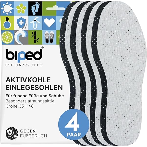 Hey, kennst du das Problem mit schwitzigen Füßen und unangenehmen Gerüchen in den Schuhen? Diese biped Frottee-Einlegesohlen sind die perfekte Lösung! Das 2er-Pack bietet dir weiche Barfußsohlen aus 100% Baumwolle, die sich super angenehm anfühlen. Die Aktivkohle-Schicht absorbiert nicht nur Feuchtigkeit, sondern neutralisiert auch Gerüche - ideal für alle, die ihre Schuhe barfuß tragen wollen. Egal ob in Sneakern, Business-Schuhen oder Hausschuhen, die optimierte Passform sorgt für perfekten Sitz. Besonders praktisch: Die Sohlen sind waschbar! Einfach bei 30°C in der Maschine waschen (am besten im Wäschenetz) oder von Hand reinigen. Der Baumwoll-Frottee ist super saugfähig und atmungsaktiv, während der Latexschaum mit Aktivkohle für zusätzliche Frische sorgt. Auch bei stark schwitzenden Füßen bleibst du damit den ganzen Tag trocken und comfortable. Einfach die Sohlen nach dem Tragen aus den Schuhen nehmen, damit alles gut trocknen kann. Perfekt für den Sommer, aber auch im Rest des Jahres eine hygienische Bereicherung für deine Schuhe!