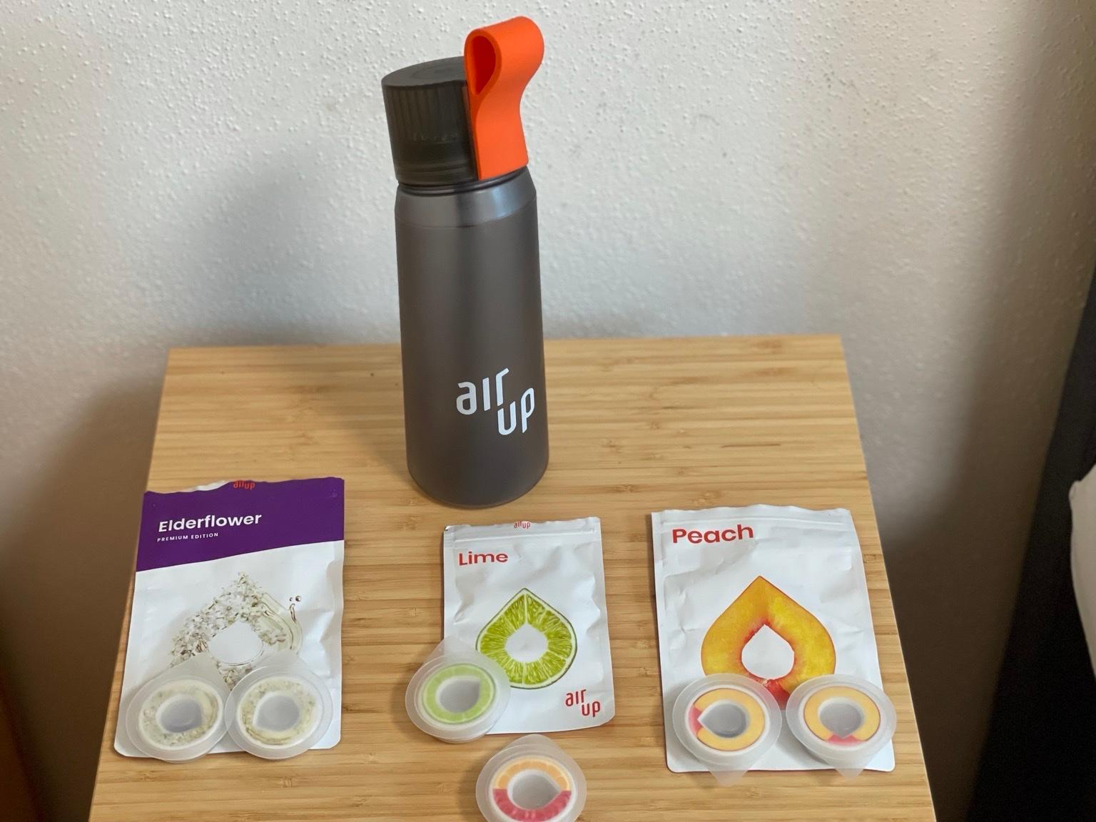 Kennst du das? Wasser ist dir zu langweilig, aber Saft und Limo sind viel zu ungesund? Dann ist die AIR UP Flasche genau das Richtige für dich! Mit der patentierten Scentaste-Technologie schmeckst du fruchtige Aromen, trinkst aber reines Wasser - komplett ohne Zucker und Kalorien! Das Starter-Set kommt in edlem Midnight Black inklusive 5 verschiedenen Geschmackspods: Cola, Watermelon, Virjin Mojito, Pfirsich und Ananas. Ein Pod verwandelt bis zu 25 Liter Wasser in ein Geschmackserlebnis! Die 600 ml Flasche aus BPA-freiem Tritan ist spülmaschinenfest und super praktisch für unterwegs. Ob in der Schule, im Büro oder beim Sport - du hast immer dein gesundes Lieblingsgetränk dabei. Und das Beste: Die Flasche wird in Österreich produziert und spart bis zu 88% Plastikmüll im Vergleich zu Einwegflaschen. Einfach Wasser einfüllen, Pod aufstecken und genießen! So macht Wassertrinken richtig Spaß und du bleibst den ganzen Tag über optimal hydriert. Perfekt für alle, die mehr trinken wollen aber normalem Wasser nichts abgewinnen können.