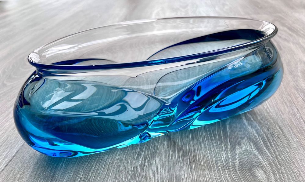 Wunderschöne Glasschale von Ullmannglass! In intensivem Blau komplett durchgefärbt - die Farbe geht nicht verloren und kann nicht abgewaschen werden. Mit besonderer Warzenoptik für einzigartiges Lichtspiel. Ca. 22cm Durchmesser und 10,8cm hoch. Aus hochwertigem Kristallglas gefertigt. Perfekt als Obstschale, für Dekoration oder als besonderes Geschenk. Sieht edel aus und ist ein echter Hingucker in jedem Wohnraum. Einfach zu reinigen und langlebig. Hol dir dieses kunsthandwerkliche Stück für dein Zuhause!