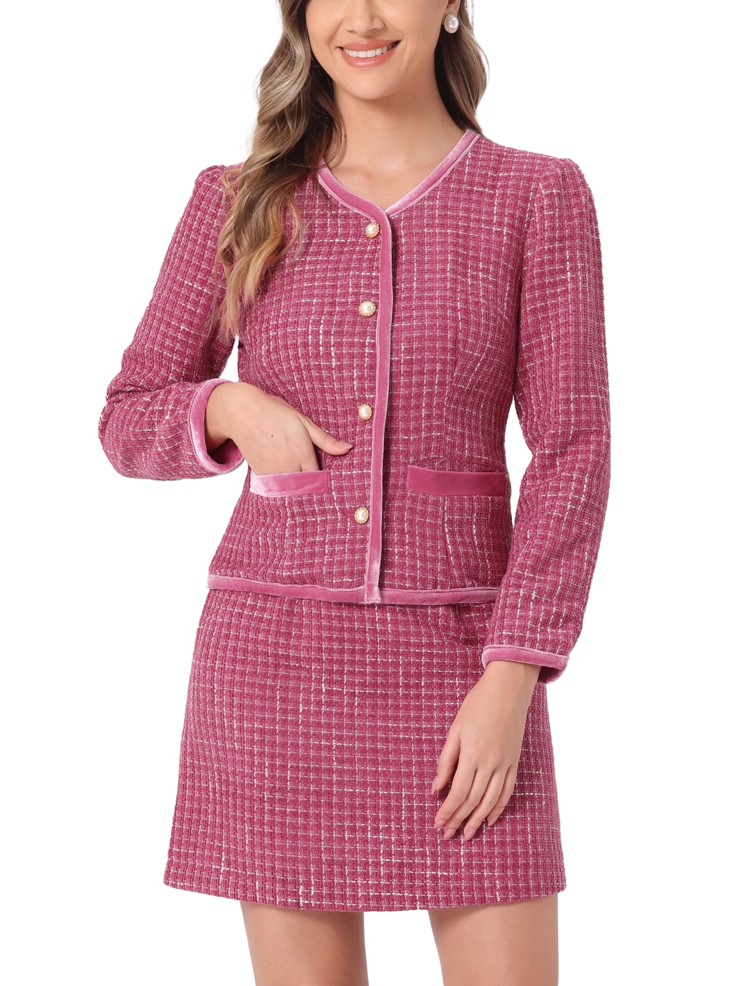 Hey, dieser Allegra K Blazer im Plaid Tweed-Design ist einfach stylisch und vielseitig! Mit kariertem Tweed-Stoff, langen Ärmeln, kragenlos und vorne offen - vollständig gefüttert für extra Komfort. Die Pattentasche und der goldfarbene Rand geben ihm einen eleganten, vintage Touch. Perfekt für Business, Meetings, Dates oder einfach für die Freizeit. Passt super zu Midi-Röcken oder langen Hosen und verleiht jedem Outfit einen schicken Look. In verschiedenen Größen von XS bis XL erhältlich - normale Passform, also bequem und gut sitzend. Kaltwäsche reicht, um ihn frisch zu halten. Ob im Büro, beim Brunch oder auf einer Party - mit diesem Blazer bist du immer gut angezogen und fühlst dich selbstbewusst. Ein Must-have für deine Garderobe - zieh ihn an und strahle!
