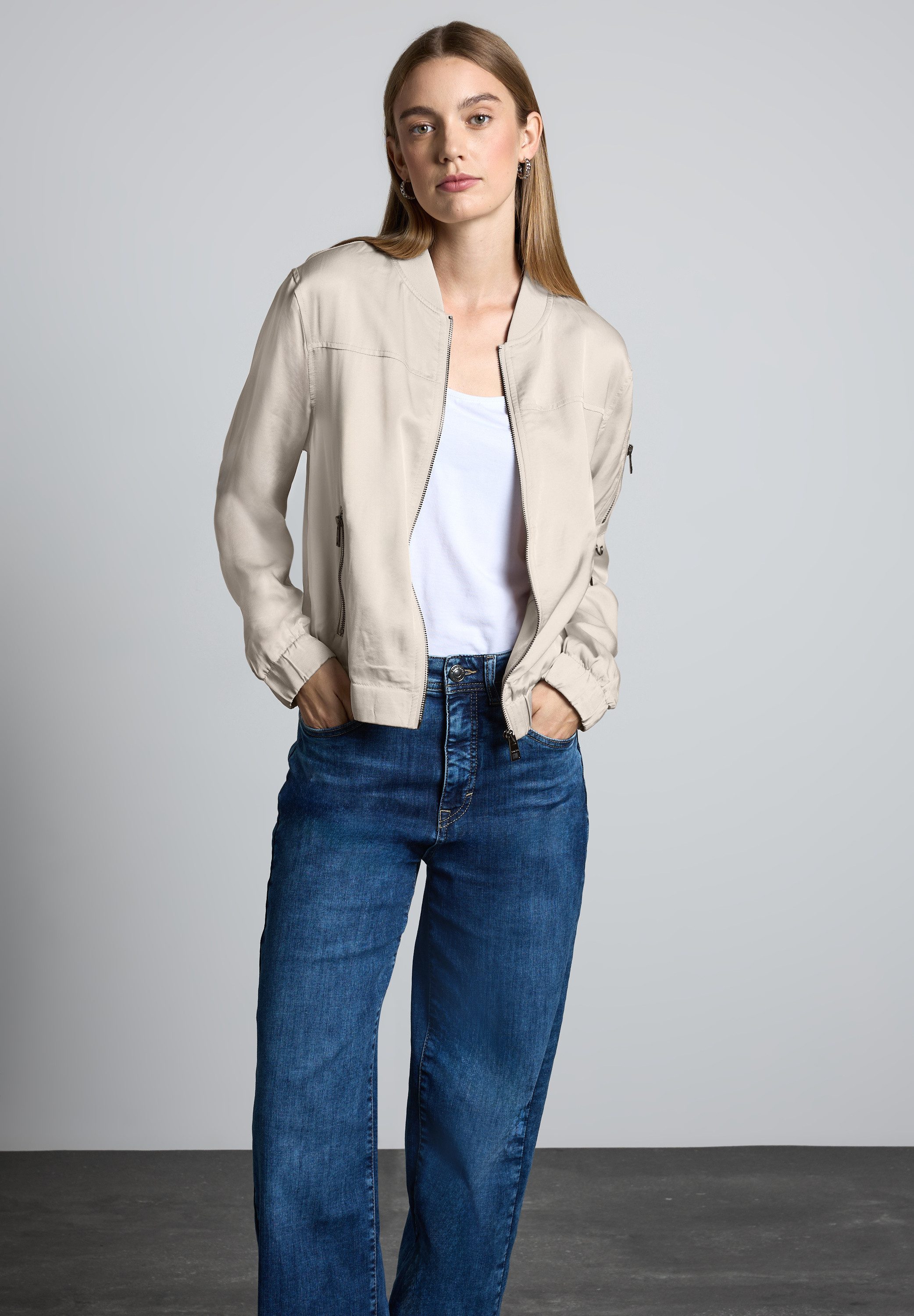 Total lässig dieser Street One Blouson! Mit Hemdkragen und Brusttaschen sieht er einfach stylisch aus. Der Reißverschluss schließt sicher und die elastischen Bündchen sorgen für perfekten Sitz. Ob zum Jeans rock, zur Hose oder zum Kleid - dieser Blouson passt immer. Super praktisch: Die Taschen, in denen du dein Handy, Schlüssel oder Lippenstift verstauen kannst. Das Material fühlt sich angenehm an und die Verarbeitung ist wie immer bei Street One top. Perfekt für den Frühling, Herbst oder kühlere Sommerabende. Einfach überziehen und du bist perfekt angezogen - ob für die Arbeit, Uni oder Freizeit. Ein Must-have für jede modebewusste Frau!