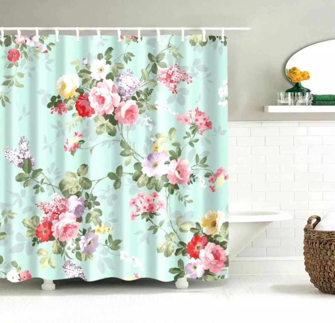 LOVOUS Duschvorhang Vintage Blumen 183x183cm - Bauernhaus Design Badezimmer