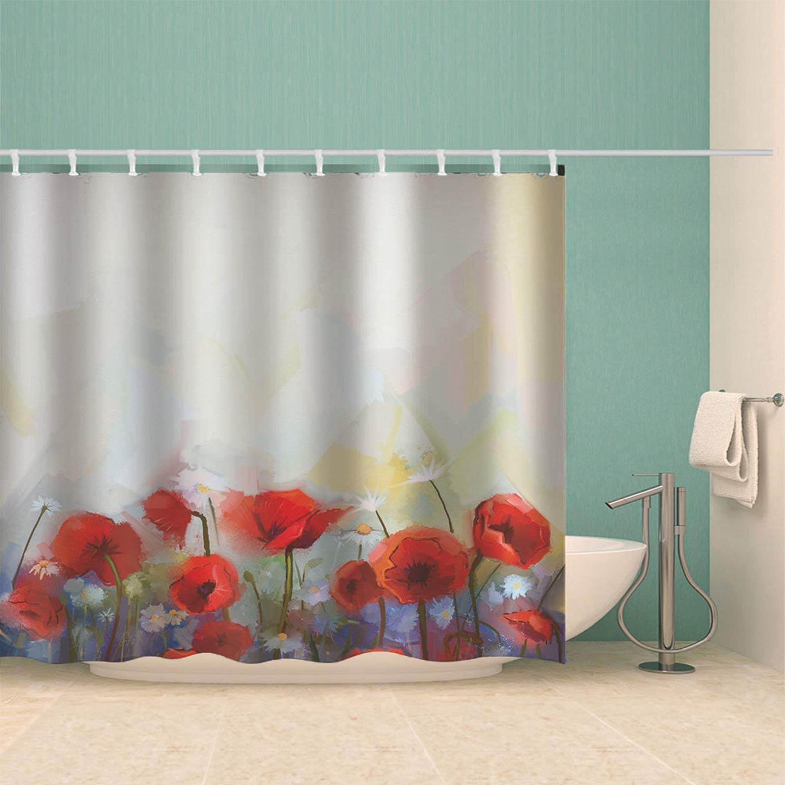 Dieser hübsche Duschvorhang mit Blumen-Design macht dein Badezimmer sofort gemütlicher! Aus hochwertigem Polyester gefertigt, ist er 100% wasserdicht, antibakteriell und trocknet super schnell. Die 12 Metallringe halten sicher und der gewichtete Saum verhindert lästiges Verkanten. Einfach in der Waschmaschine bei 30°C waschbar - praktisch, oder? Das 3D-Design sieht total modern aus und passt zu den meisten Einrichtungsstilen. Und als Bonus gibt's eine Aufbewahrungstasche dazu! Mit 30-Tage-Rückgaberecht - probier ihn einfach aus!