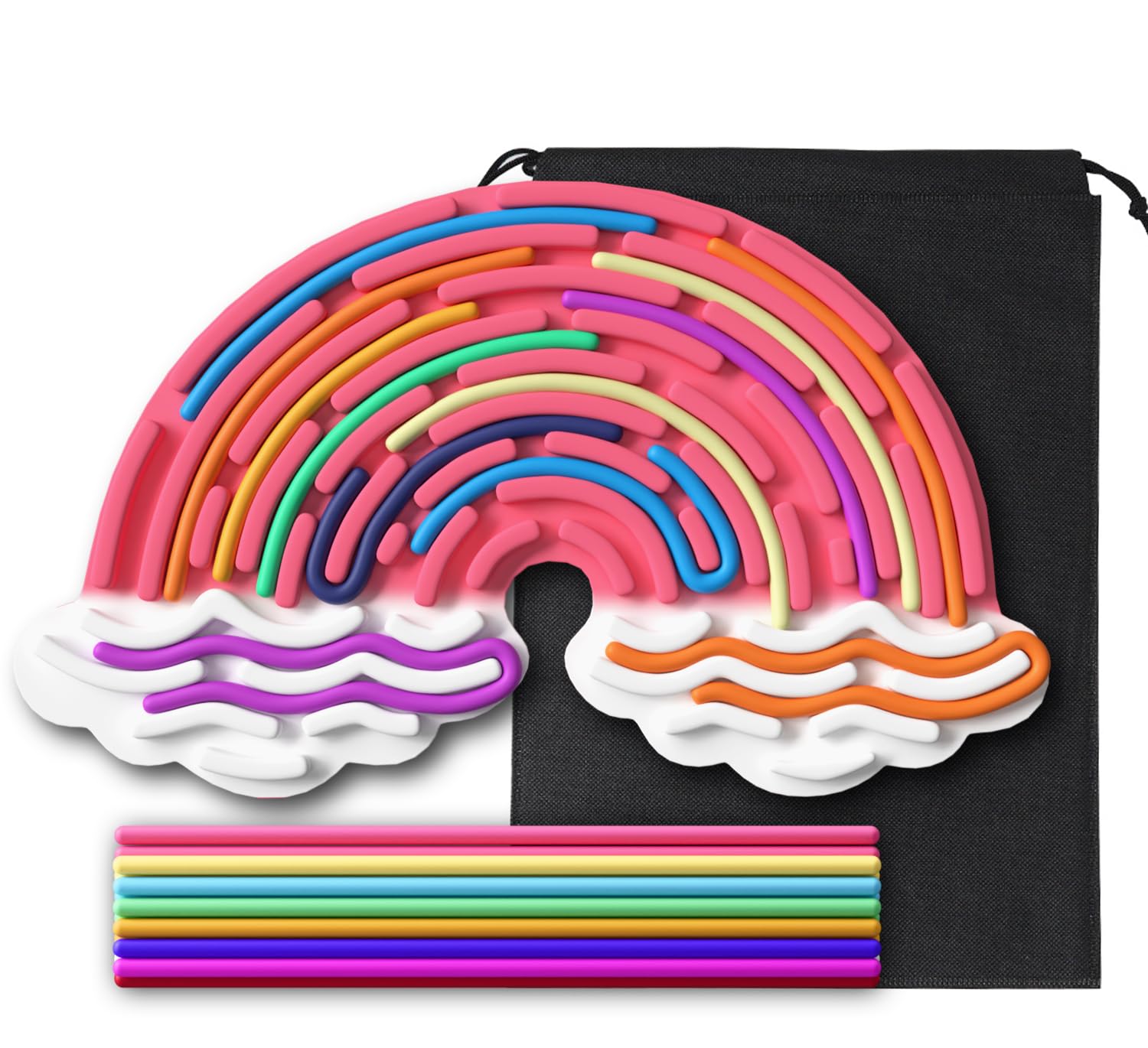Mit praktischer Reisetasche und 12 bunten Silikonbändern - ideal für unterwegs! Ob im Auto, Flugzeug oder Wartezimmer - sorgt für ruhige Beschäftigung ohne Bildschirm.