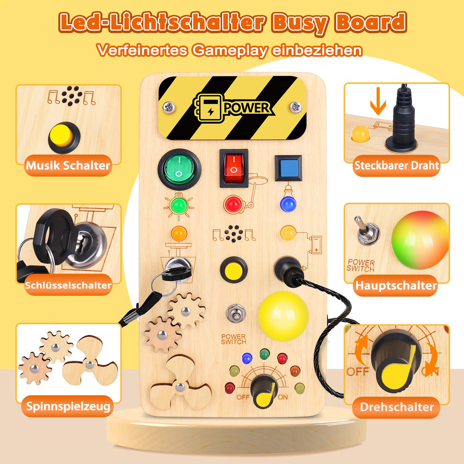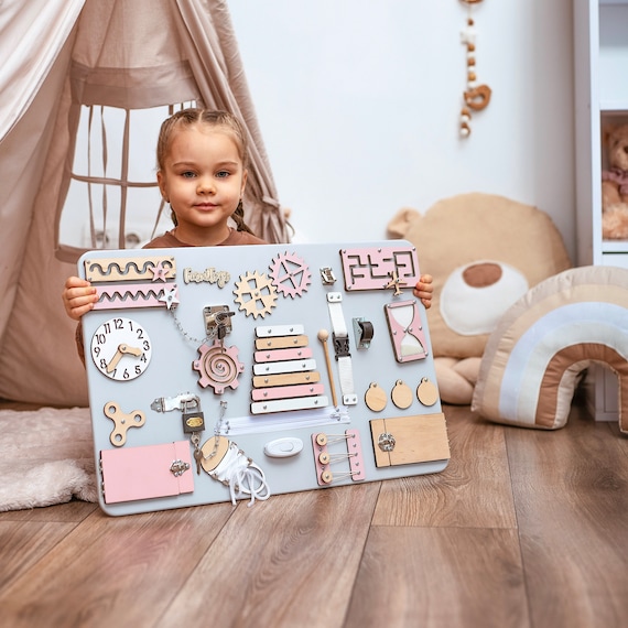 Dieses Montessori Busy Board im süßen Einhorn-Design ist der absolute Hit für kleine Entdecker! Mit 16 verschiedenen Aktivitäten fördert es spielerisch die Feinmotorik deines Kindes. Da gibt es Reißverschlüsse, Schnallen, Druckknöpfe, Knöpfe, Klettverschlüsse und sogar Schnürsenkel - alles was kleine Hände gerne ausprobieren! Besonders praktisch: Das Board trainiert genau die Fähigkeiten, die Kinder im Alltag brauchen - selbst anziehen wird damit zum Kinderspiel! Hergestellt aus hochwertigem Filz ohne scharfe Kanten, superweich und absolut unbedenklich für Kinderhaut. Die bunten Farben und das niedliche Einhorn-Motiv ziehen sofort die Aufmerksamkeit der Kleinen auf sich. Wenn es nicht benutzt wird, lässt es sich einfach zusammenfalten auf 26,5x21 cm - platzsparend und leicht (nur 232 Gramm). Mit dem praktischen Tragegriff wird es zur kleinen Handtasche für unterwegs - perfekt für Restaurantbesuche, Autofahrten oder Wartezeiten beim Arzt. Ideal für Kinder von 1-5 Jahren, aber auch ältere Geschwister haben noch ihren Spaß damit. Ein wunderbares Geschenk für Geburtstage, Weihnachten oder einfach mal so! Eltern lieben es weil es pädagogisch wertvoll ist, Kinder lieben es weil es einfach Spaß macht. Endlich mal ein Spielzeug das nicht nach 5 Minuten in der Ecke landet - hier wird konzentriert und ausdauernd gespielt!