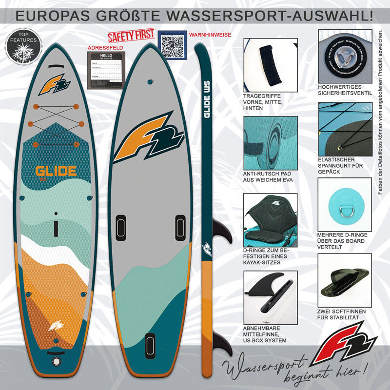 Hey, dieses F2 SUP Board ist genau das Richtige für alle Paddel-Begeisterten! Speziell für Frauen designed, super leicht und trotzdem mega stabil. Mit 10 Fuß Länge und 80 cm Breite gibt's genug Standfläche für nen sicheren Trip auf dem Wasser. Das Diamond Pad gibt dir perfekten Halt, und die beiden Finnen sorgen für ne super Manövrierfähigkeit. Wird komplett mit Tasche, Pumpe, Reparatur-Set und Paddel geliefert - also alles, was du brauchst. Einfach aufpumpen auf 10-15 PSI und ab geht's! Perfekt für Seen und ruhige Gewässer. Macht einfach irre Spaß und sieht dazu noch total stylisch aus in dem Multicolor-Design!