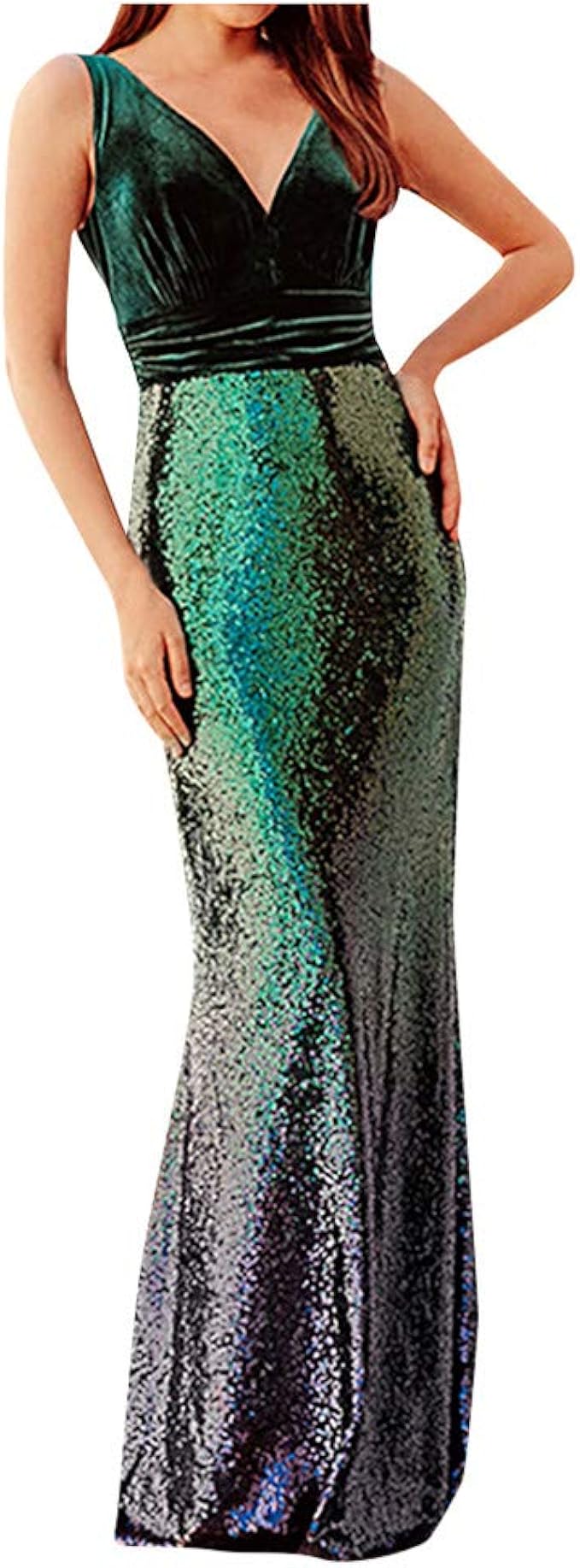 Missufe Damen Abendkleid Lang - Elegantes Bodycon Kleid Mit Rüschen & Schlitz | Für Hochzeit & Party