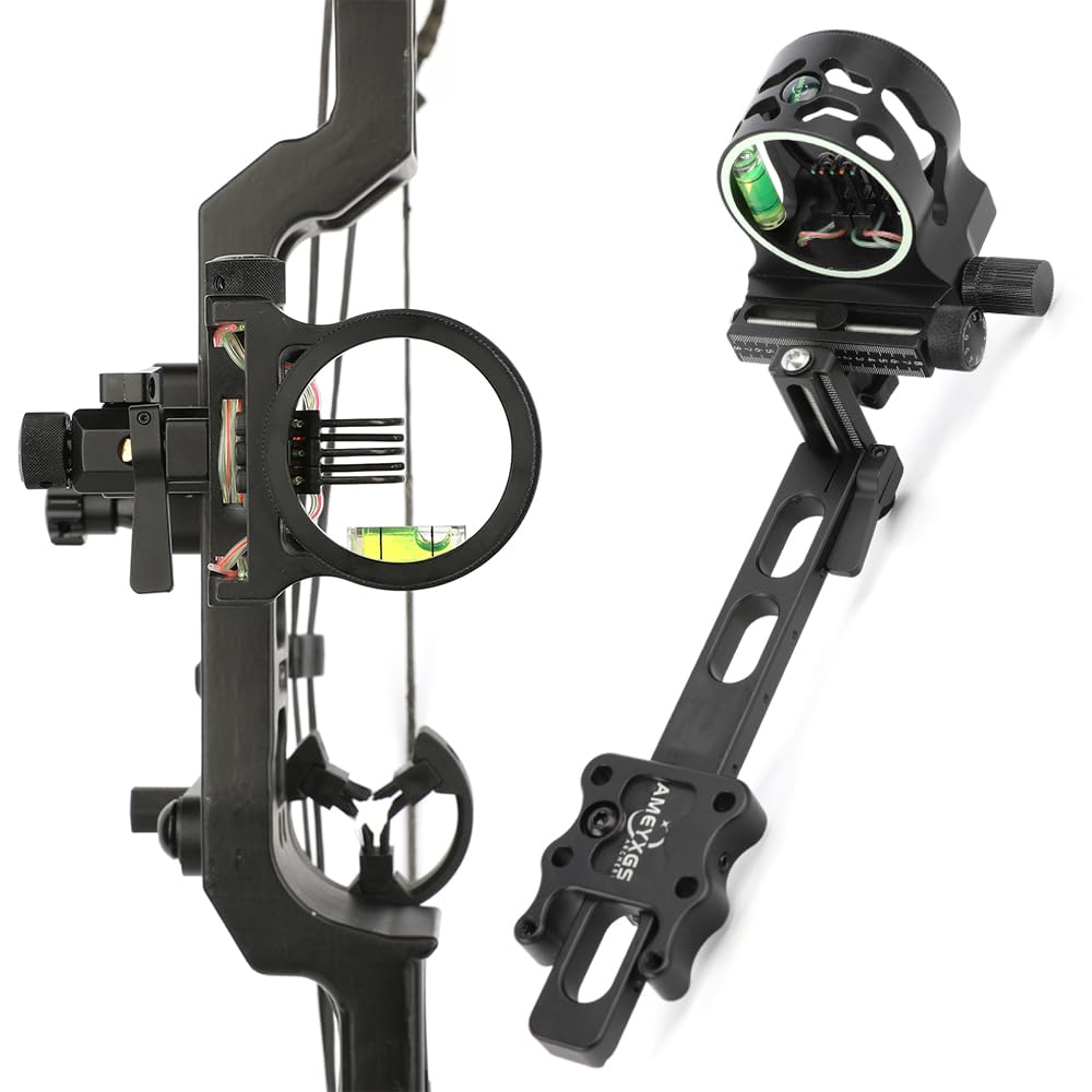 Für präzises Bogenschießen! Dieses 5-Pin Bogenvisier für Compound-Bögen bringt dein Training auf das nächste Level. Aus hochfester Aluminium-Legierung gefertigt und mit CNC-Präzision verarbeitet, ist es extrem robust und langlebig. Das erweiterte Rahmendesign filtert störende Reflexionen und macht das Zielen durch das Peepsight einfacher. Die 5 optischen Fasern mit 0,019\ Stärke bieten klare Lichtwahrnehmung. Stell dir vor: Du triffst ins Schwarze, egal bei welchen Lichtverhältnissen! Die 4-Wege-Mikroverstellung mit tickendem Geräusch ermöglicht präzise Justierung ohne Werkzeug. Das integrierte Visierlicht macht die Pins bei schlechten Lichtverhältnissen heller und verbessert die Zielgenauigkeit. Erhältlich in zwei Größen: 25cm lange Stange (256g) oder 16,5cm kurze Stange (185g). Perfekt für verschiedene Bogenspezifikationen und Peepholes. Einfach montieren, einstellen und von der verbesserten Treffsicherheit profitieren. Ob für Training oder Wettkampf - dieses Visier macht dich zum besseren Schützen!