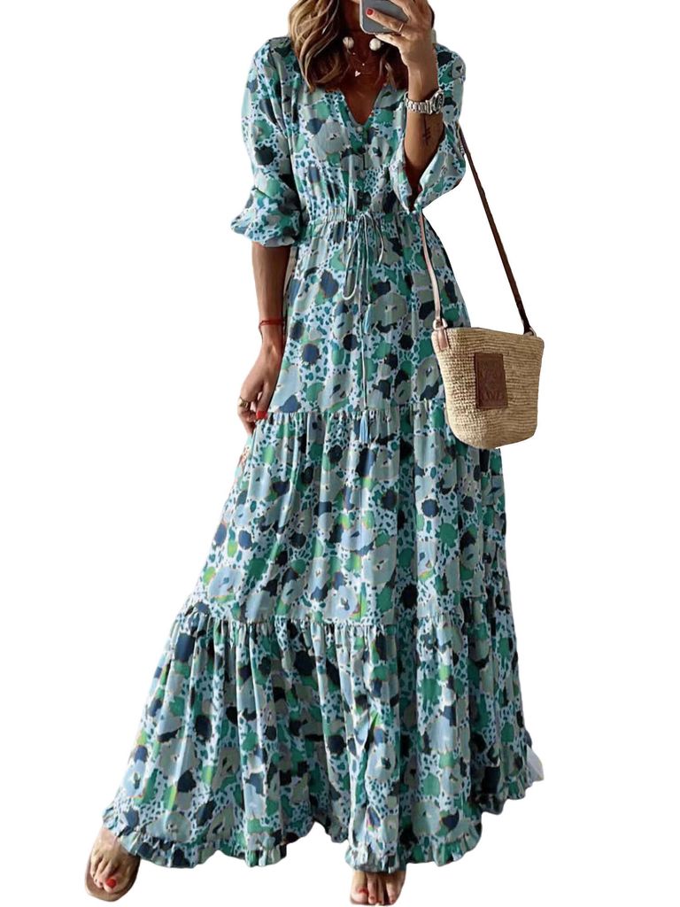 Wow, dieses MOKBAY Kleid ist ja mal traumhaft! Maxi-Länge mit wunderschönem Blumenmuster in Pastellfarben - total verspielt und elegant. Aus weichem, leichten Stoff - super bequem und atmungsaktiv. Mit V-Ausschnitt und lockerem Oversize-Schnitt - schmeichelhaft für jede Figur. Perfekt für Sommer, Strand, Urlaub oder Festivals. Kombinierbar mit Hüten, Sandalen oder High Heels. Ideal für Alltag, Dates, Partys, Hochzeiten oder Abendveranstaltungen. Einfach überziehen und du siehst sofort chic aus - ob für entspannte Tage oder besondere Anlässe. So fühlst du dich wohl und siehst dabei großartig aus!