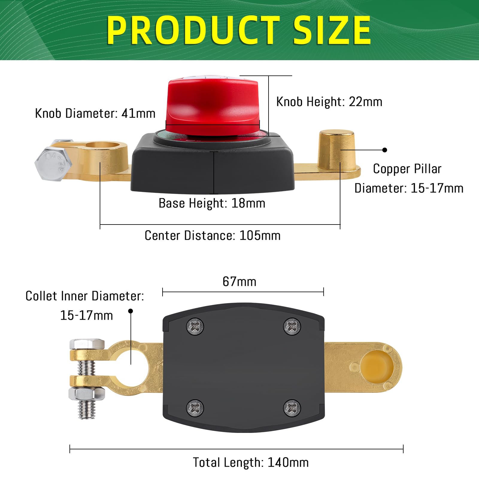 Sicherheit geht vor - besonders bei der Batterie! Dieser hochwertige Batterie-Trennschalter von Bolatus ist die perfekte Lösung, um deine Fahrzeugbatterie komplett vom Stromkreis zu trennen. Mit einer Nennleistung von 200A Dauerlast und Kompatibilität für 12V, 24V und sogar 48V Systeme ist er extrem vielseitig einsetzbar. Der 180° drehbare Schalter ermöglicht flexible Installation auch in beengten Platzverhältnissen. Hergestellt aus flammhemmendem Nylon und ABS-Kunststoff mit Messingbeschlägen und vernickelten Schrauben für hervorragende Korrosionsbeständigkeit. Perfekt für Autos, LKWs, Wohnmobile, Boote und Motorräder. Verhindert Stromlecks und unerwünschten Energieverlust, wenn das Fahrzeug nicht genutzt wird - das verlängert die Lebensdauer deiner Batterie erheblich. Einfach zu installieren und zu bedienen - einfach umdrehen und die Stromversorgung ist sicher unterbrochen. Besonders praktisch bei längeren Standzeiten oder für die Wartung. Ein kleines Teil mit großer Wirkung für mehr Sicherheit und Batterielebensdauer!