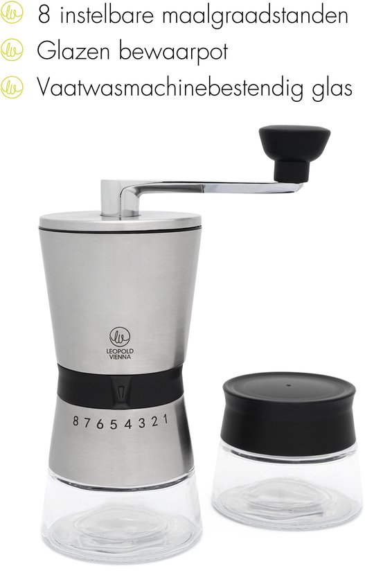 • Leopold Vienna Kaffeemühle Bologna - 8 Mahlgrade Mit Glas-Vorratsbehälter