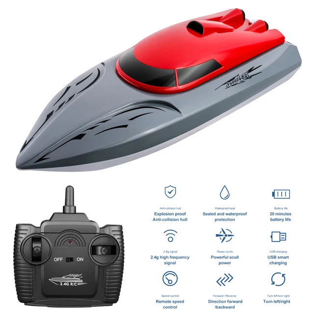 Boah, dieses ferngesteuerte Boot ist ja mal der absolute Hammer! Mit sagenhaften 50km/h Geschwindigkeit schießt es über das Wasser wie ein Profi-Rennboot! Die 2,4 GHz Fernsteuerung mit Anti-Interferenz-Funktion ist genial - mehrere Boote können gleichzeitig fahren ohne sich zu stören! Mit zwei wiederaufladbaren Batterien hast du immer genug Power - die Ladezeit beträgt etwa 2 Stunden, dann kann es 30 Minuten lang fahren! Das wasserdichte Design mit EVA-Dichtungsring schützt die Elektronik zuverlässig - kein Wassereinbruch! Das Alarmsystem bei niedrigem Batteriestand warnt dich rechtzeitig, damit du das Boot nicht verlierst! Mit 32,5 cm Länge ist es handlich genug für den Transport, aber groß genug für stabile Fahrt! Ob im Schwimmbad, See oder Fluss - dieses Boot macht überall Spaß! Die Doppelpropeller-Technologie sorgt für maximale Leistung und Wendigkeit! Perfekt für Kinder ab 6 Jahren und Erwachsene - ein echter Familienspaß! Einfach das coole Sommer-Spielzeug für alle Wasser-Fans!