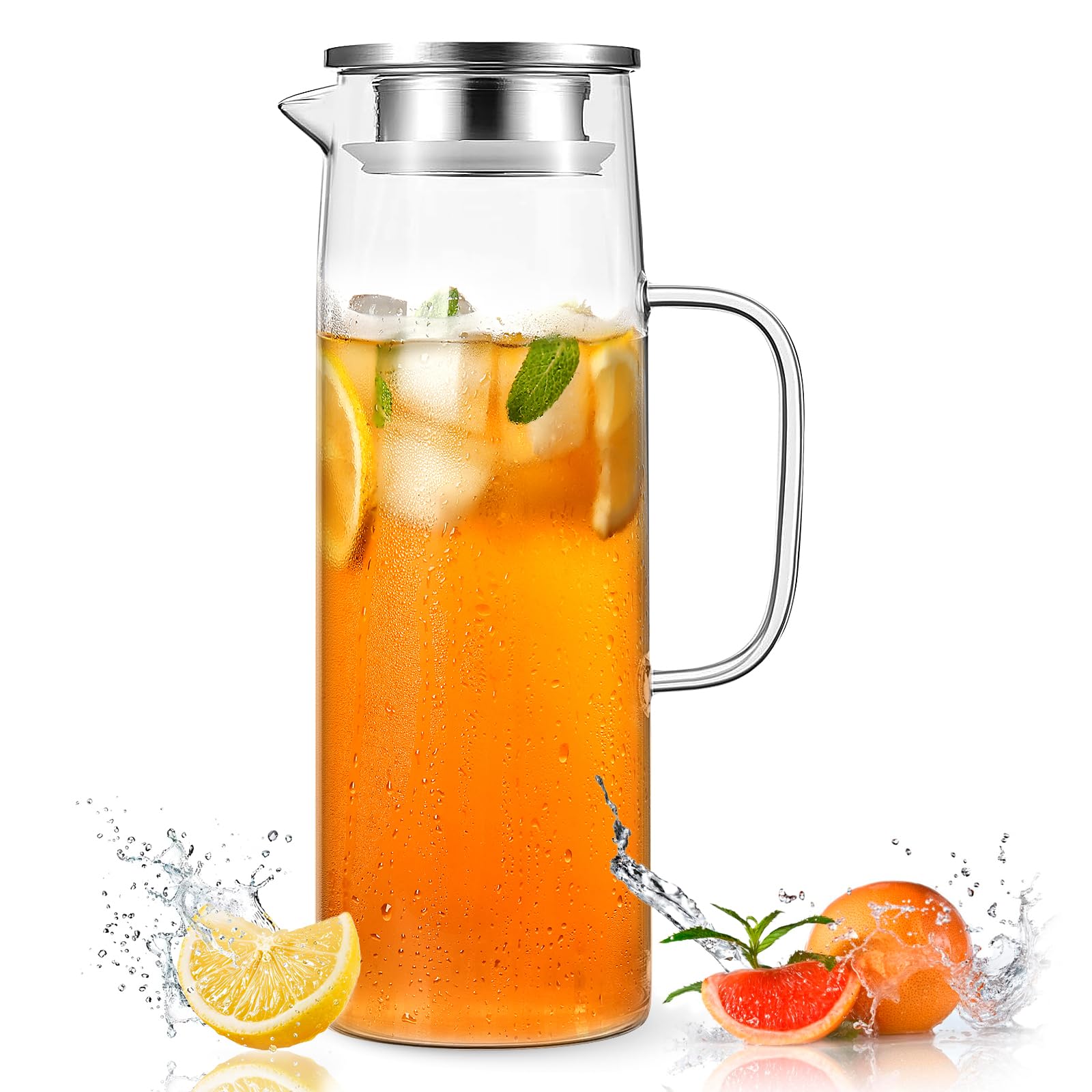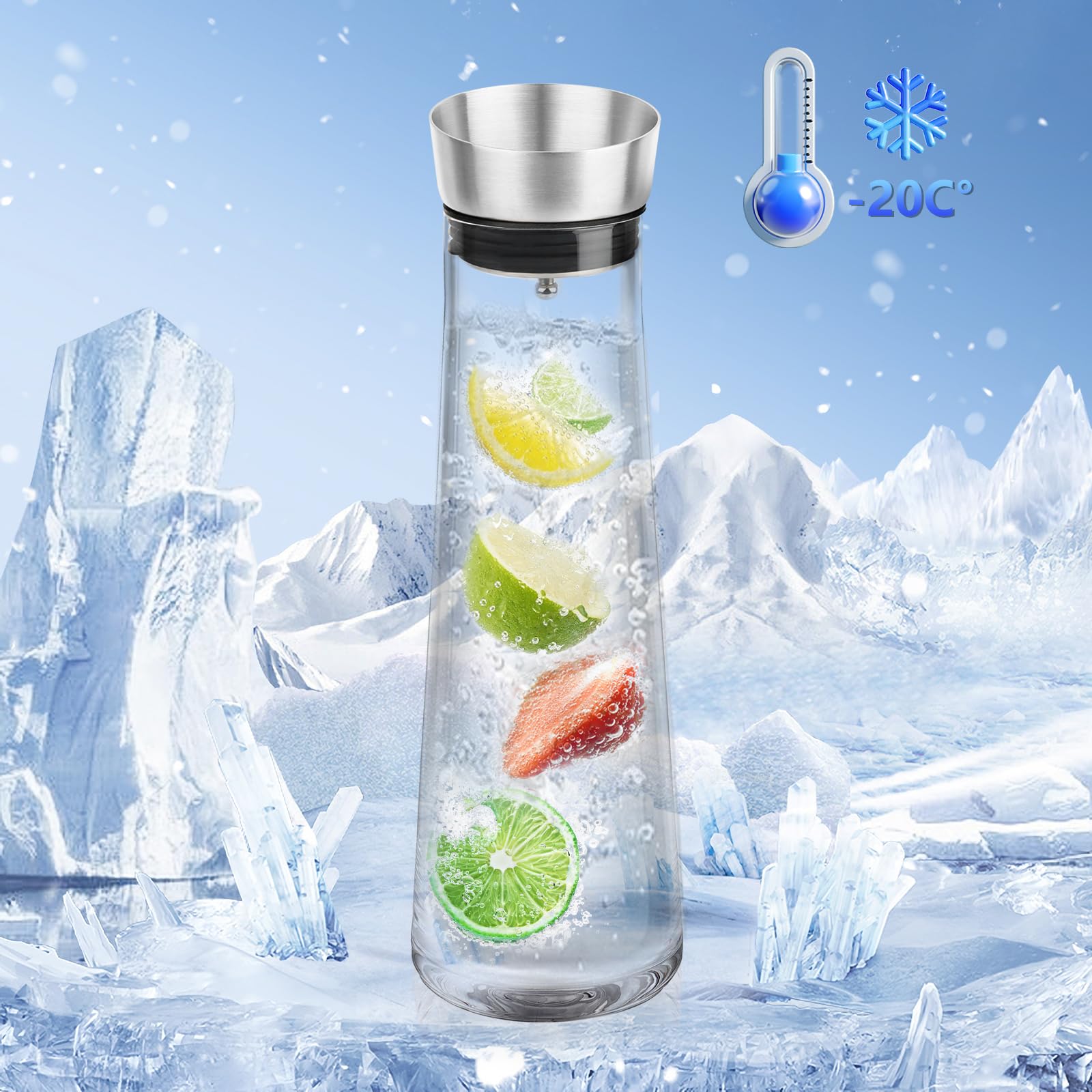 Wow, diese Karaffe ist einfach der Hammer! Aus hochwertigem Borosilikatglas gemacht, das sowohl eiskalte Getränke (-4°C) als auch kochendes Wasser (bis 150°C) problemlos aushält. Perfekt also für eisgekühlten Eistee im Sommer oder duftenden Glühwein im Winter. Der tropffreie Edelstahl-Ausguss gießt super präzise - da tropft wirklich nichts daneben! Der ergonomische Griff liegt auch mit vollem 1,5 Liter Inhalt super in der Hand. Der rostfreie 304er Edelstahl-Deckel hat ein cleveres Dichtungssystem mit beidseitig nutzbarem Silikonring - wenn's mal undicht wird, einfach den Ring umdrehen und schon ist alles wieder dicht. Reinigen kannst du die Karaffe einfach in der Spülmaschine (obwohl Handwäsche empfohlen wird). Die weite Öffnung macht die Reinigung super einfach und dank des reinen Glases bleiben keine Gerüche zurück. Ob für Wasser, Eistee, Wein oder Saft - diese Karaffe ist einfach der Alleskönner für jede Küche! Die schlanke Form passt übrigens perfekt in jede Kühlschranktür. Einfach ein Traum für jeden Haushalt!