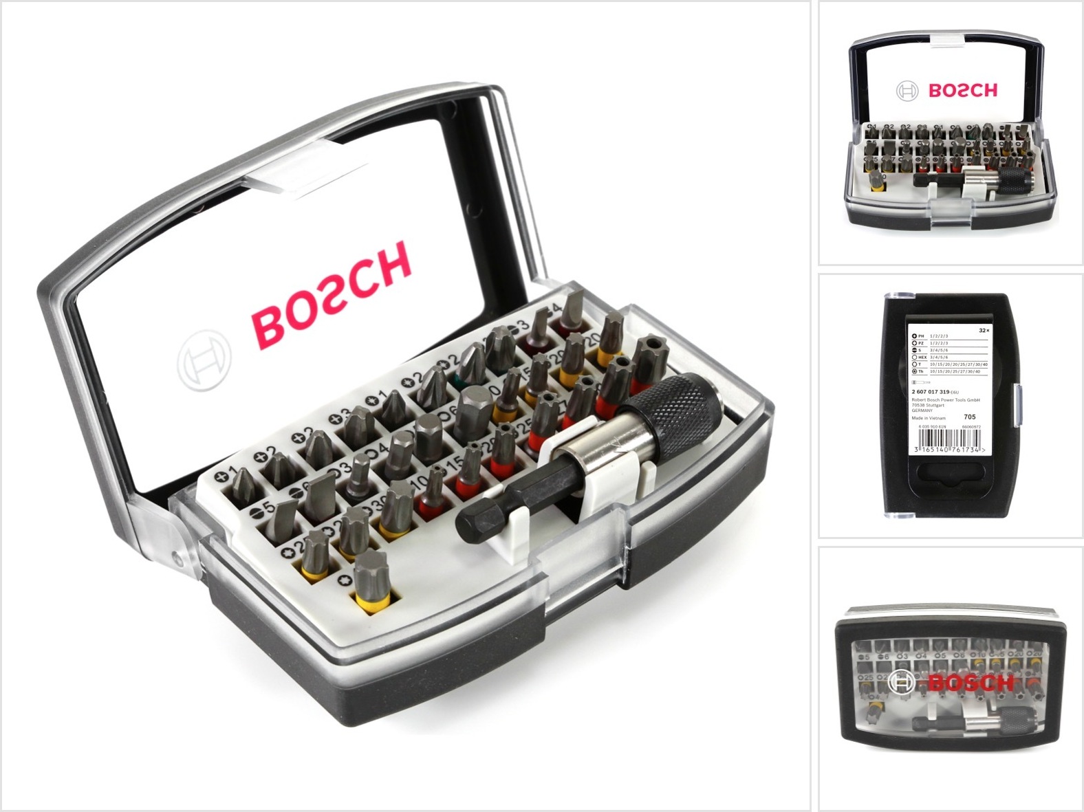 Hey Handwerker! Dieses Bosch Schrauberbitset mit 16 Teilen ist dein neuer bester Freund in der Werkstatt! Mit 25 mm Länge passen die Bits perfekt in deine Schraubbmaschine oder deinen Akkuschrauber. Im Set findest du alles, was du brauchst: UH 54, LS 0.8x5.5, LS 1.2x8.0, PH1, PH2 (2x), PH3, PZ1, PZ2 (2x), PZ3, T15, T20, T25, T30 und T40. Also sowohl für Kreuzschlitz, Pozidriv als auch Torx-Schrauben bestens ausgestattet! Die Standard-Qualität von Bosch garantiert, dass die Bits nicht so schnell abnutzen oder brechen. Super praktisch für alle Heimwerker-Projekte - ob Möbel aufbauen, Regale montieren oder Reparaturen im Haus. Alles schön verpackt in einem praktischen Set, sodass du immer die richtigen Bits griffbereit hast. Kein Suchen mehr, kein Ärger mit den falschen Bits - einfach das richtige rausnehmen und losschrauben! Ein Muss für jede Werkzeug-Sammlung.