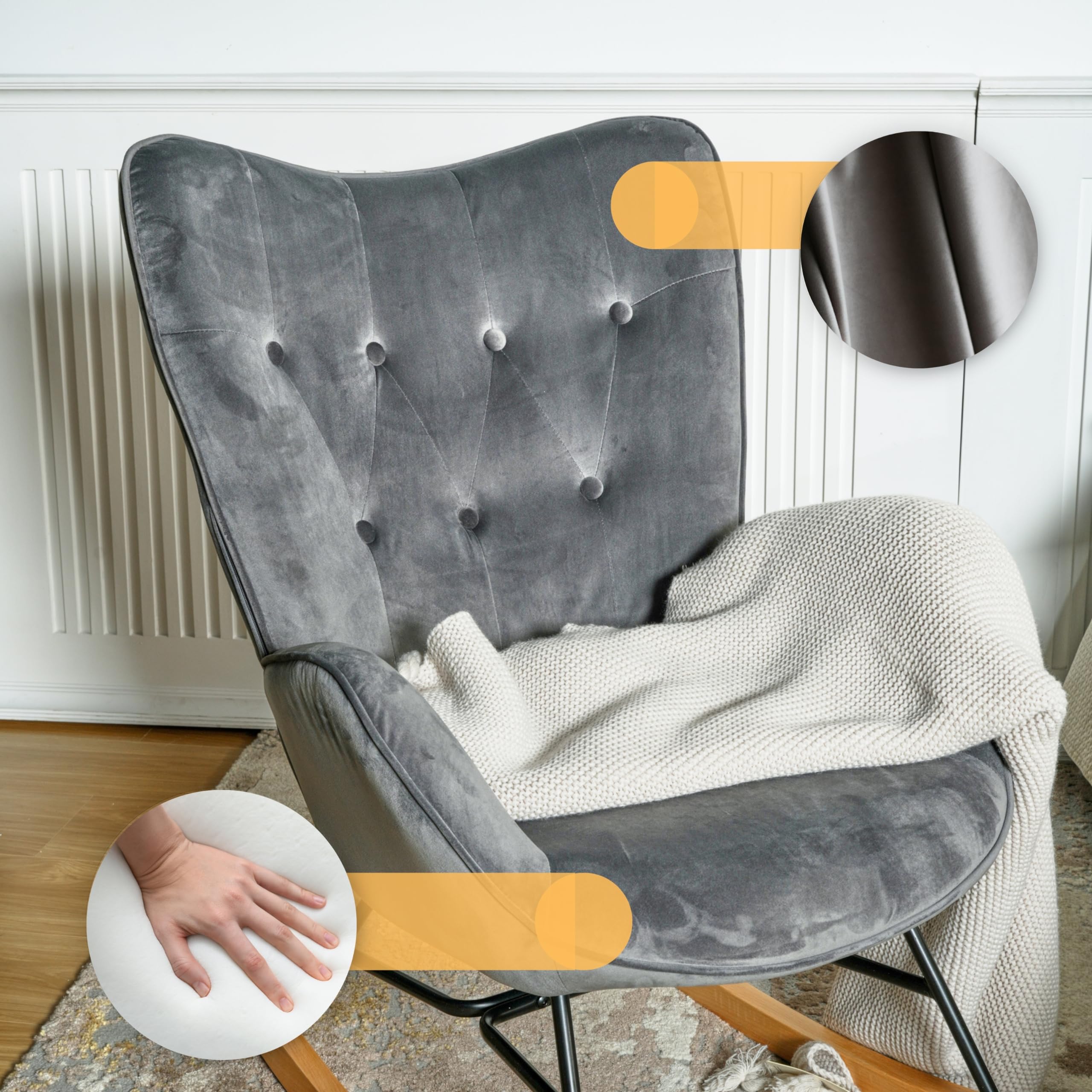 Dieser wunderschöne Schaukelstuhl von MEUBLE COSY ist einfach die pure Entspannung! Mit seinem eleganten Bouclé-Stoff und den massiven Holzkufen bringt er sofort gemütliches Flair in dein Zuhause. Der formschöne Sessel hat eine superbequeme, dick gepolsterte Sitzfläche (40x50cm) und ergonomisch geformte Armlehnen, die sich perfekt an deinen Körper anpassen. Bis zu 120 kg belastbar und mit einem stabilen Stahlrahmen plus Buchenholzkufen - da kannst du dich sicher zurücklehnen! Perfekt fürs Wohnzimmer, Schlafzimmer oder als gemütliche Leseecke. Das sanfte Schaukeln ist ideal zum Entspannen, fürs Nickerchen oder sogar zum Beruhigen deines Babys. Die rutschfesten Filzgleiter schützen deine Böden vor Kratzern. Montage ist total einfach - in wenigen Schritten aufgebaut und schon kann die Entspannung beginnen! Ein echter Hingucker der nicht nur gut aussieht, sondern auch superbequem ist.