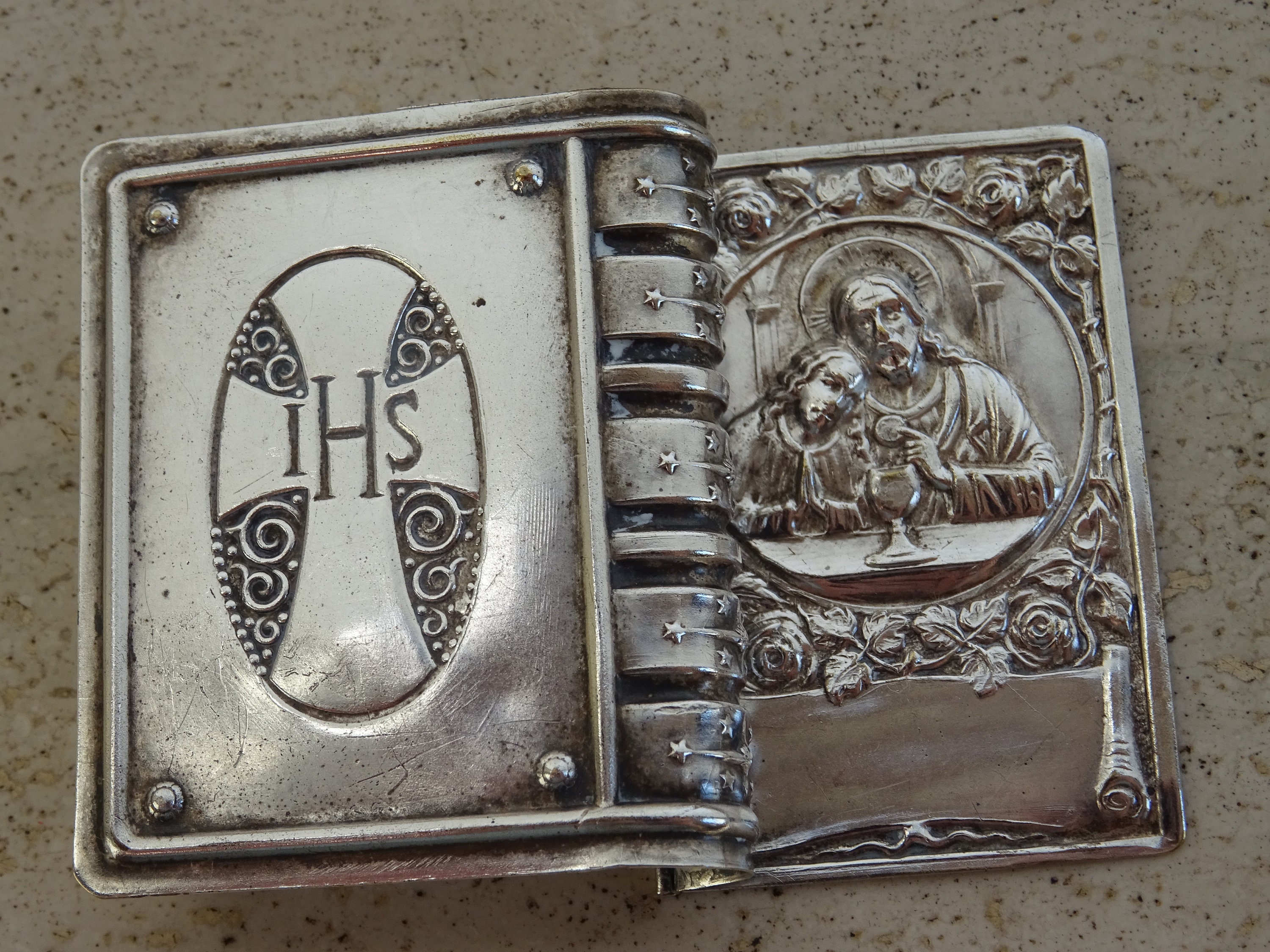Suchst du ein besonderes Geschenk zur Konfirmation? Diese wunderschöne Rosenkranz-Box aus Messing ist perfekt! Mit der Aufschrift 'Confirmed in Christ' und einer Taube als Symbol - einfach stilvoll. Der Klappdeckel mit Knopföffnung macht das Zugreifen super einfach.