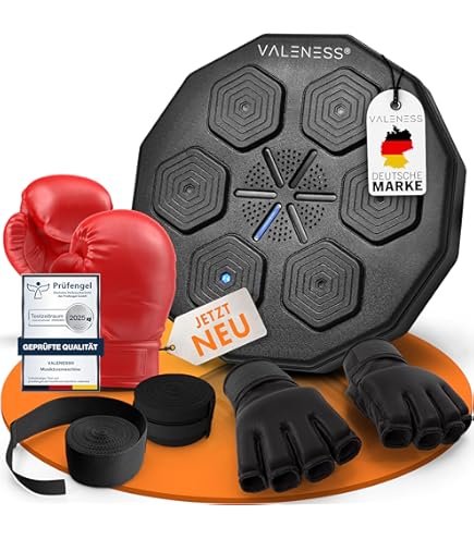 Richtig cooles Trainingsgerät für zu Hause! Diese Eznaobo Musik Boxmaschine bringt das Boxerlebnis direkt in dein Wohnzimmer. Mit Bluetooth kannst du deine Lieblingsmusik verbinden und dazu trainieren. Drei einstellbare Geschwindigkeits- und Lautstärkestufen ermöglichen dir sowohl intensive Workouts als auch entspannte Trainingseinheiten. Das LED-Display zeigt deine Treffer an und motiviert dich zu Höchstleistungen. Mitgeliefert werden Boxhandschuhe, Saugnäpfe für die Wandmontage, Gummistreifen und ein Ladekabel. Der eingebaute 500mAh Akku lädt in 4 Stunden auf und hält etwa 2 Stunden. Aus robustem ABS und PU gefertigt, hält die Boxmaschine auch härteren Schlägen stand. Perfekt für Stressabbau, Fitness-Training oder einfach nur für Spaß mit Freunden. Egal ob du professioneller Boxer, Fitness-Einsteiger oder einfach nur gestresst bist - hier kommt garantiert keine Langeweile auf!