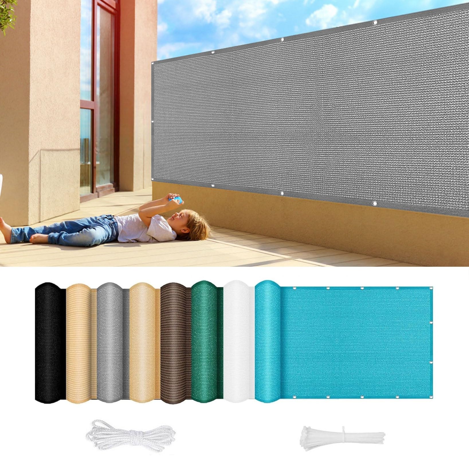 Endlich Privatsphäre auf dem Balkon! Dieser Sichtschutz aus robustem HDPE-Material ist 90cm hoch und 620cm lang - perfekt für die meisten Balkone. In braun, sieht natürlich aus wie Holz. Blockt 95% der UV-Strahlung und schützt vor neugierigen Blicken. Mit Edelstahl-Ösen alle 50cm, einfach mit dem beiliegenden Seil und Kabelbindern befestigen. Wetterfest, reißfest und jahrelang haltbar. Atmungsaktiv, aber blickdicht. Einfach mit Wasser reinigen. Macht aus deinem Balkon eine richtige Wohlfühloase - ob in der Stadt oder auf dem Land. Einfach montieren und genießen!