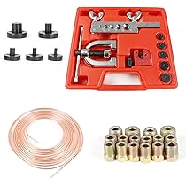 Hey, wenn du selbst an Bremsleitungen arbeiten willst, ist dieses Bördelgerät-Set von YEZMEK genau das Richtige! Das komplette Set enthält alles, was du brauchst: 3/16\ und 1/4\ Matrizen, Ausrichtbolzen, Doppelkopf-Punzen und sogar einen praktischen Aufbewahrungskoffer. Aus robustem Kohlenstoffstahl gefertigt, hält das Werkzeug auch bei intensiver Nutzung. Der ergonomische Griff liegt super in der Hand und rutscht nicht - selbst bei längeren Arbeiten. Perfekt für 45° SAE Doppelbördel an Brems-, Kraftstoff- und Hydraulikleitungen. Ob für Auto, LKW oder Motorrad - damit gelingen dir perfekte Bördelungen beim ersten Versuch. Der abnehmbare Griff ist genial für enge Stellen, und du kannst das Teil auch im Schraubstock einspannen. Einfach auspacken und loslegen - professionelle Ergebnisse garantiert!