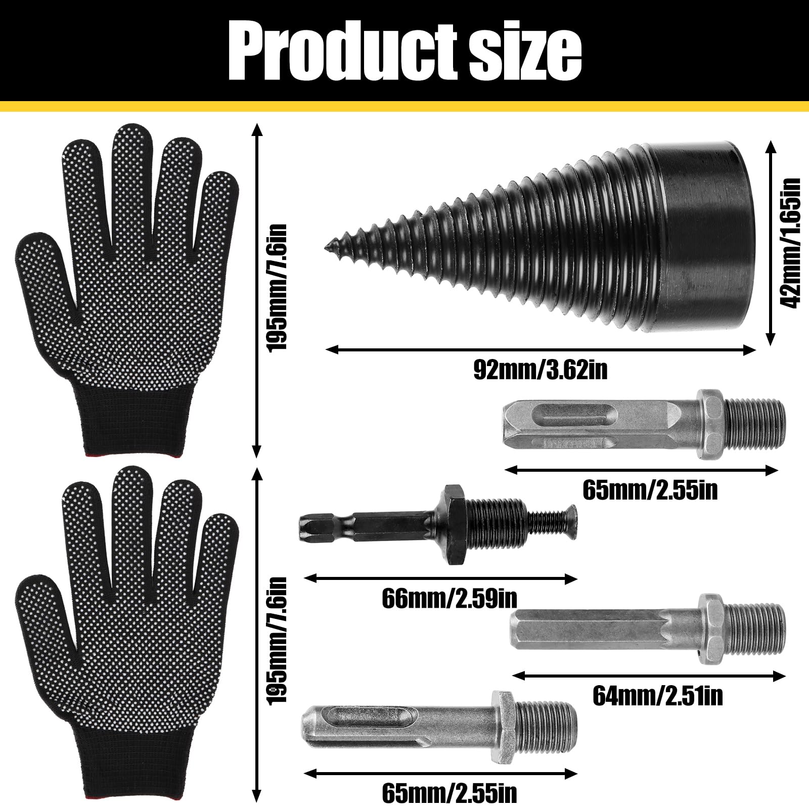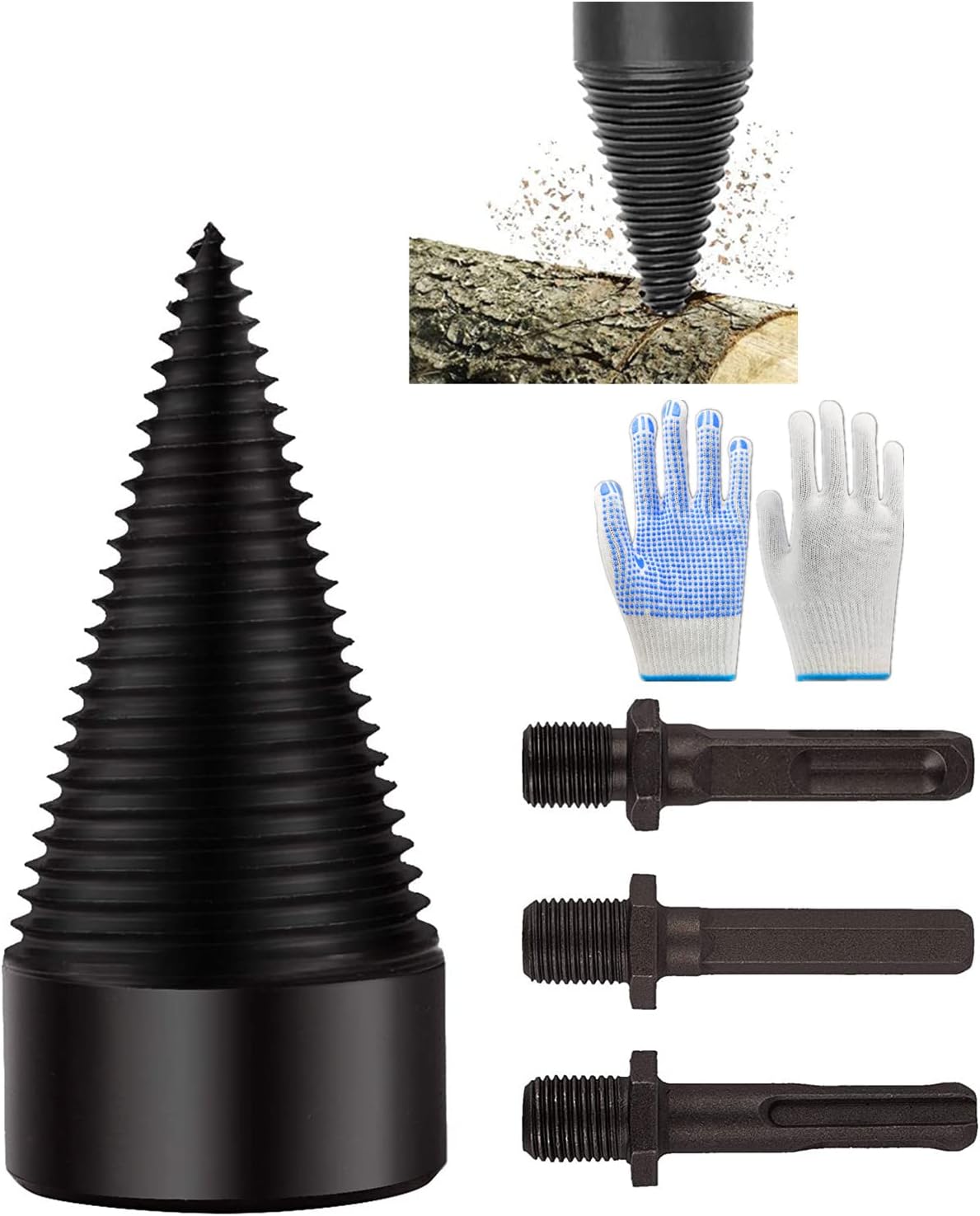 Holz machen war noch nie so einfach! Dieser geniale Holzspalter-Bohrer verwandelt deine Bohrmaschine in eine kraftvolle Holzspalt-Maschine! 42mm Durchmesser - spaltet selbst hartes Holz mühelos! Aus hochwertigem Kohlenstoffstahl - extrem robust und verschleißfest! Im Set: 1 Bohrer plus 3 verschiedene Griffe (Vierkant, Rund, Sechskant) - für fast jede Maschine! Das tiefe Gewinde-Design erhöht die Reibung - Holz spalten wird zum Kinderspiel! Spitze Konstruktion findet schnell den optimalen Spaltpunkt! Anti-Rutsch-Rillen verhindern Abrutschen - mehr Sicherheit und Effizienz! Perfekt für Eiche, Walnuss, Pekan und andere Hölzer! Einfach in den Bohrer einsetzen und los geht's! Ideal für zu Hause, Camping oder Bauernhof! Spart Zeit und Kraft gegenüber herkömmlichen Methoden! Mach dir das Holzmachen leicht mit diesem praktischen Helfer! Hol es dir und erlebe, wie einfach Brennholz vorbereiten sein kann!