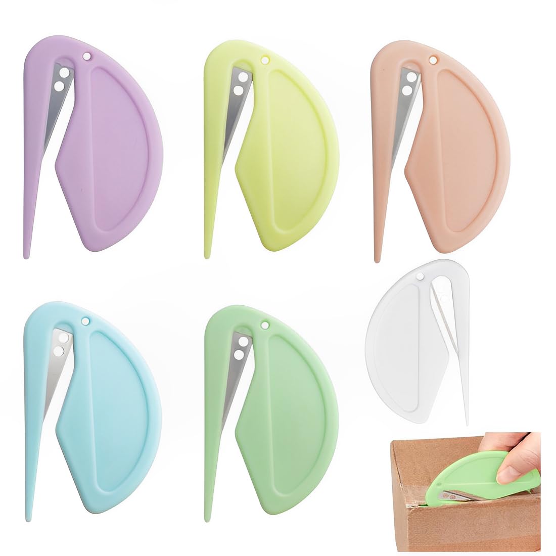 Dieses 6-teilige Brieföffner Set in den Farben Gelb, Weiß, Blau, Rot, Grün und Schwarz macht das Öffnen von Post zum Vergnügen! Jeder Brieföffner misst 9,5 × 6,3 × 0,3 cm und liegt damit perfekt in der Hand. Hergestellt aus hochwertigem PS-Material und Edelstahl, sind sie leicht, langlebig und sicher in der Anwendung. Die ergonomische Form ermöglicht ein präzises Öffnen von Umschlägen, Dokumenten und Paketen ohne Verletzungsgefahr. Das praktische Loch zum Aufhängen erlaubt die Befestigung an Schlüsselbändern oder Schlüsselanhängern. Kompakt und leicht - ideal für Büro, Zuhause oder unterwegs. Ein unverzichtbarer Helfer für alle, die täglich mit Post und Paketen zu tun haben. Bring Farbe in deinen Arbeitsalltag!