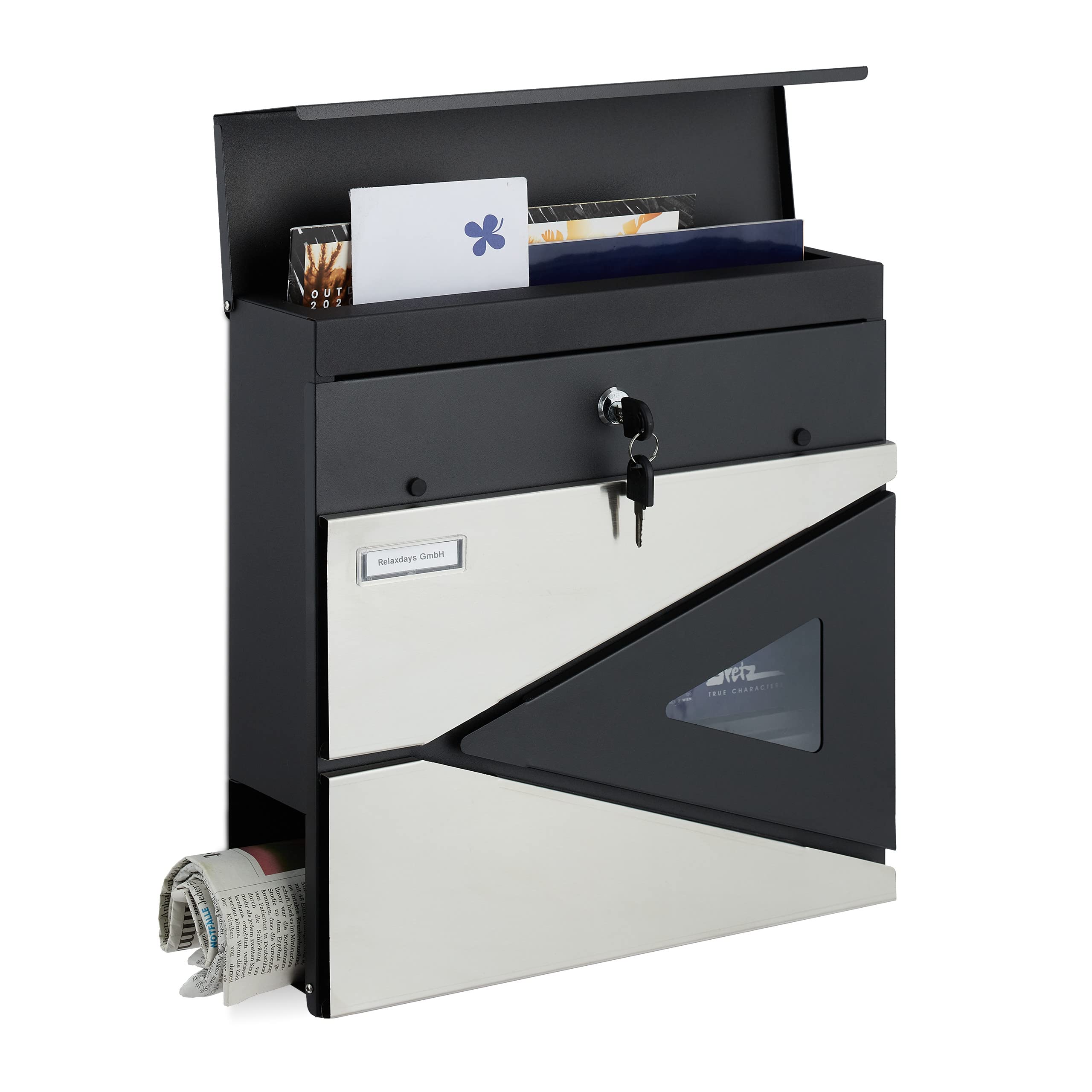 Relaxdays Briefkasten Schwarz Mit Zeitungsfach - Moderner Metall Briefkasten
