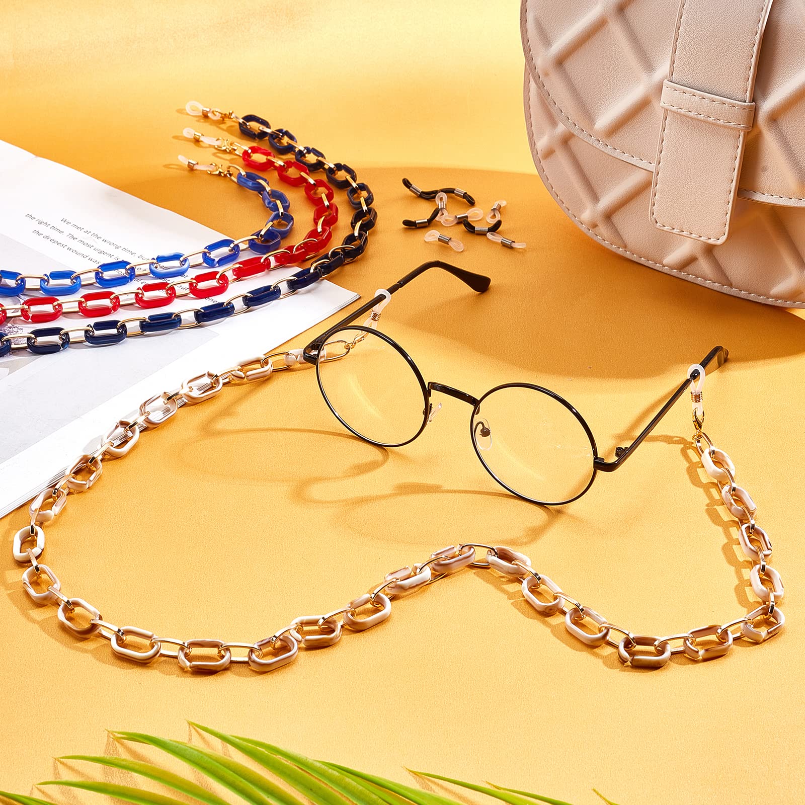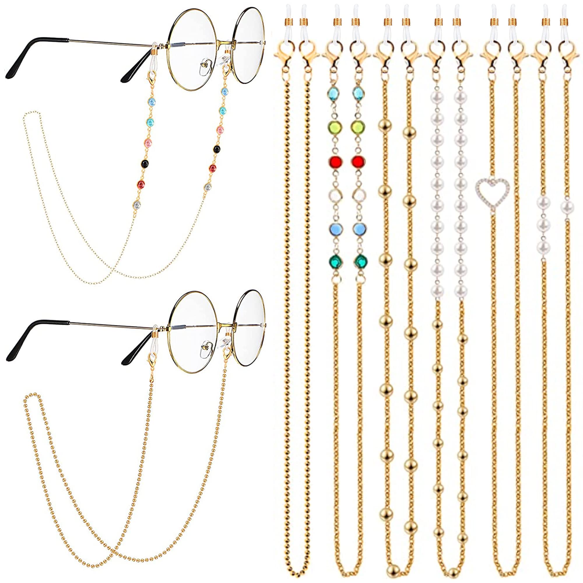 6x Damen Brillenketten Set - Brillenbänder Mit Anti-Rutsch Ringe