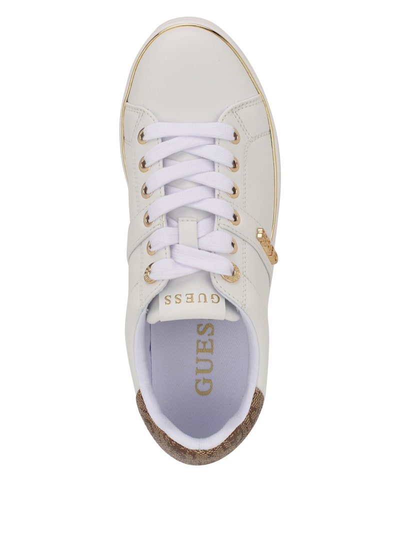 Die Guess Britz Sneaker sind genau das, was deinem Outfit noch fehlt! Mit dem coolen Guess-Logo und dem goldfarbenen Metallrand an der Sohle machst du überall eine gute Figur. Die runde Zehenpartie gibt deinen Füßen genug Platz und die Gummisohle sorgt für angenehmes Laufen. Aus synthetischem Material gefertigt, sind sie leicht zu pflegen und halten lange. Schnüren kannst du sie natürlich auch - für den perfekten Sitz. Seit 1981 steht Guess für einen jungen, abenteuerlichen Lifestyle. Diese Sneaker passen super zu Jeans, Röcken oder sogar legeren Hosen. Ob in der Stadt, im Büro oder unterwegs - mit diesen Schuhen bist du immer stylisch unterwegs. Importiert, aber mit echtem Guess-Flair!