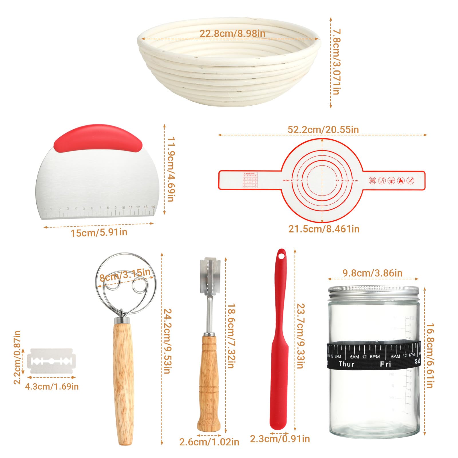 Dieses Brotback-Set ist perfekt für Einsteiger! 8 Teile: 2 Gärkörbe (rund 23cm, oval 25cm), 2 Leineneinsätze, Gärglas, Teigschaber, Schneebesen, Bäckermesser, Spatel, Bürste. Alles was du zum Brotbacken brauchst. Gärkörbe aus atmungsaktivem Material - für perfekte Brotform. Leineneinsätze waschbar - hygienisch. Einfach zu reinigen - spülmaschinenfest. Für Sauerteig, Vollkornbrot, Baguettes. Macht Brotbacken einfach und spaßig. Auch als Deko-Körbe nutzbar. Einfach bestellen und losbacken! Qualität ist top - hält ewig.