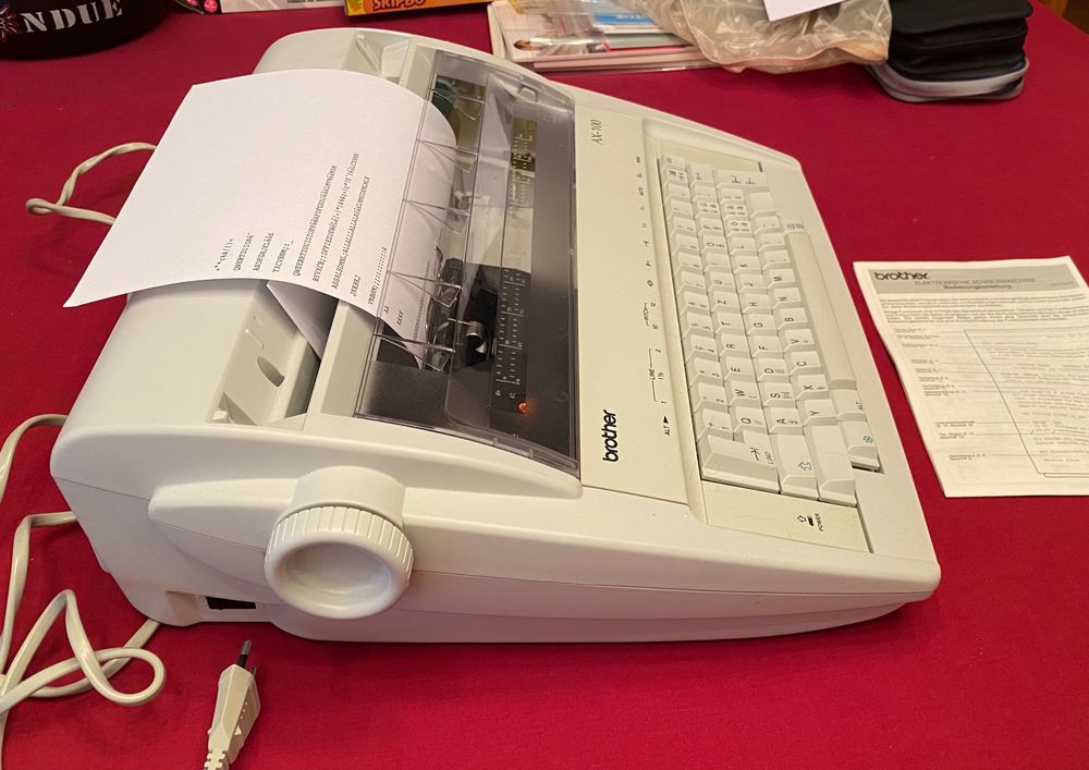 Wow, was für ein besonderes Stück! Die Brother AX-210 Öko Schreibmaschine in diesem wunderschönen Türkis ist echt was für Sammler und Nostalgie-Fans. Die Farbe ist einfach der Hammer - so ein kräftiges Türkis sieht man echt selten! Perfekt für alle, die mal was Anderes als den Computer benutzen wollen oder einfach ein besonderes Schmuckstück fürs Büro suchen. Die elektrische Schreibmaschine läuft super smooth und macht dieses typische Schreibmaschinen-Geräusch, das einfach Kult ist! Ob für Briefe, Gedichte oder als Deko-Objekt - dieses Teil ist einfach ein Hingucker! Und weil's so selten ist, wird's bestimmt zum echten Liebhaberstück! Einfach aufstellen, ein Blatt Papier rein und sich wie in alten Zeiten fühlen!