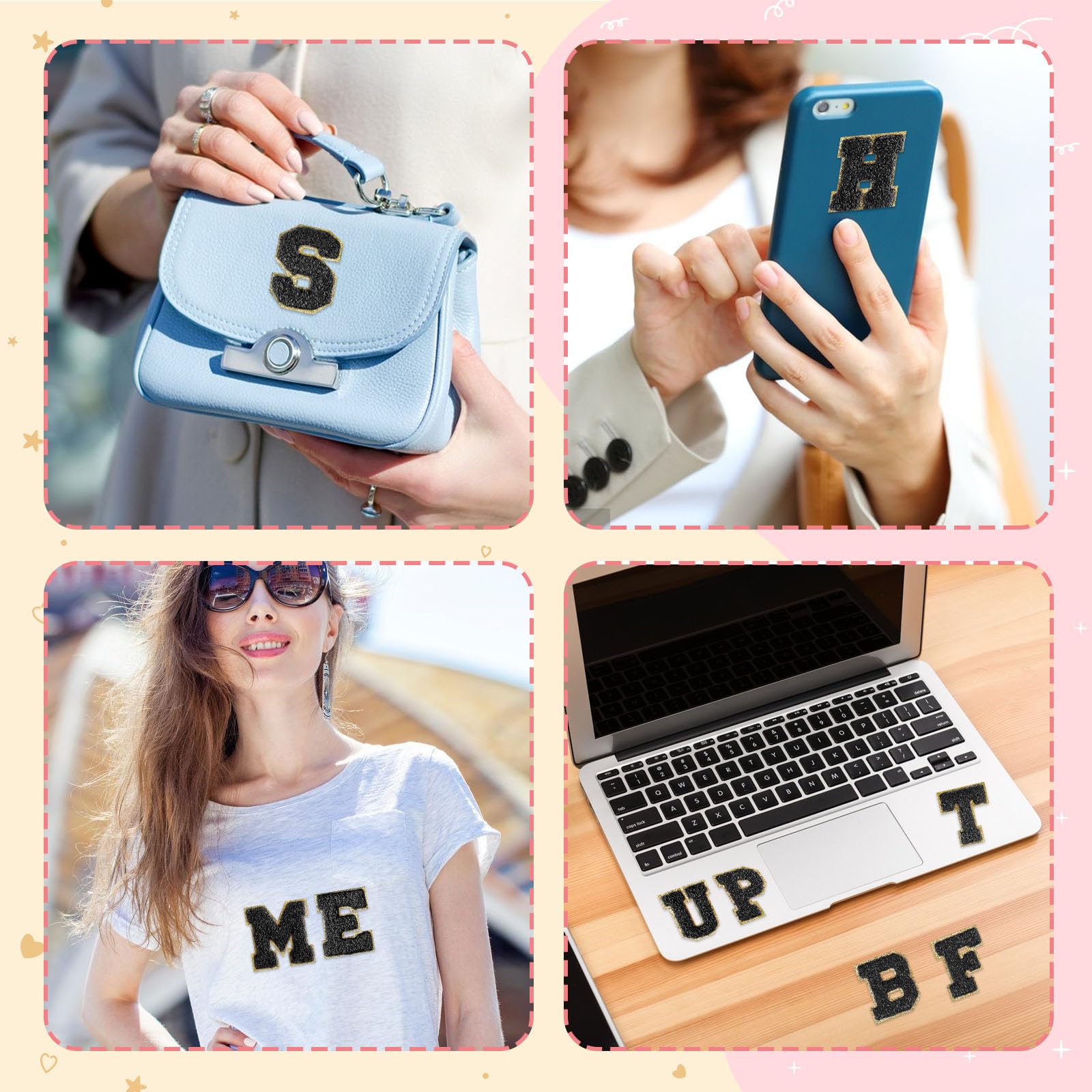 Hey, mit diesen flauschigen Chenille-Buchstaben machst du jede Jacke, jeden Rucksack oder Hut zum Unikat! Das Set kommt mit 52 Teilen - also das komplette Alphabet von A bis Z in verschiedenen knalligen Farben. Jeder Buchstabe ist etwa 5,5 cm hoch und hat diese megaweiche Chenille-Oberfläche, die sich super anfühlt. Das Beste: Die Teile sind selbstklebend! Einfach die Trägerfolie abziehen, Position aussuchen, festdrücken - fertig. Für nen extra festen Halt kannst du sie aber auch aufbügeln (Einstellung Baumwolle, ca. 150°C) oder annähen. Wichtig: Wenn du sie mal wieder abmachen willst, geht das vor dem Bügeln easy. Aber danach sind sie echt fest dran - also besser vorher genau überlegen, wo sie hin sollen! Perfekt für alle, die ihre Klamotten individuell gestalten wollen. Ob Schulranzen der Kids, Teamjacken für den Sportverein oder einfach nur coole Accessoires - mit den Buchstaben wird alles persönlicher. Das Material ist übrigens total langlebig und verblasst nicht, auch nach mehrmaligem Waschen nicht. Einfach mal ausprobieren - deiner Kreativität sind keine Grenzen gesetzt!