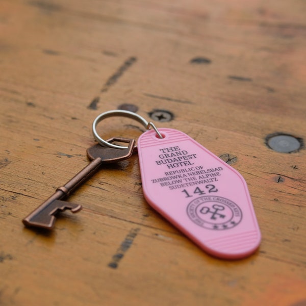 Für alle Fans von Wes Andersons Kultfilm! Dieser pinke Schlüsselanhänger im Stil des Grand Budapest Hotels ist ein absolutes Must-have. Aus robustem Acryl in der charakteristischen Pink-Farbe des Hotels gefertigt, mit schwarzem Aufdruck auf beiden Seiten. Auf der Vorderseite findest du das Logo der 'Society of the Crossed Keys', auf der Rückseite M. Gustaves berühmten Zitat aus dem Film. Mit Metall-Schlüsselring und Befestigungsstück - perfekt für deinen Schlüsselbund oder als coole Deko. Mit ca. 8,9 x 4,4 cm ist er handlich aber auffällig genug. Ein wunderbares Geschenk für Filmfans oder einfach für dich selbst, um ein Stück Filmgeschichte immer dabei zu haben. Einfach anschlüsseln und jeden Tag ein bisschen Hotel-Glamour mitnehmen!