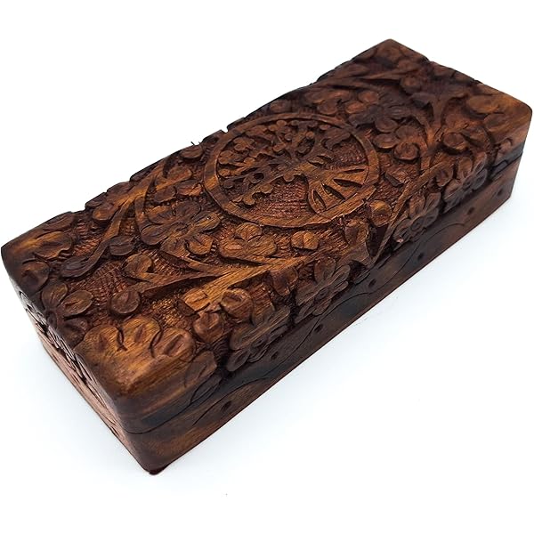 Maße: 16x7,5x7,5 cm außen, Geheimfach 11x4,5x1,5 cm. Handgemacht in Indien - jedes Stück ein Unikat!